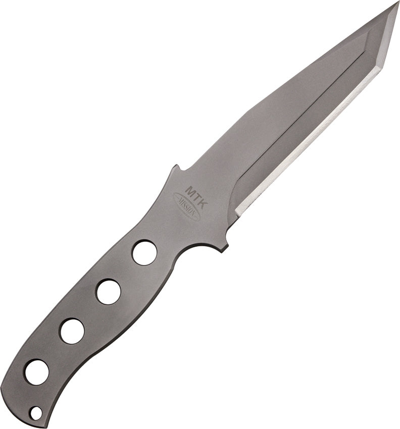 10" overall. 5 1/2" standard edge tanto blade. One-piece titanium construction. Blade is .250" thick and has superior wear resistance and should never rust or corrode. Skeletonized handle. Developed in response to the military and Special Operation’s request for a smaller CQB armor-piercing knife that doubles as a lightweight, non-magnetic pry bar tool. Features a distinctive false edge that can be readily sharpened as required, but with an angled back ending in a sharper point. It can easily be attached to the hip or thigh with the included black nylon sheath. Sheath also features front utility pouch.Please note that this collection requires a minimum of a $100.00 purchase. That is the threshold for purchase.