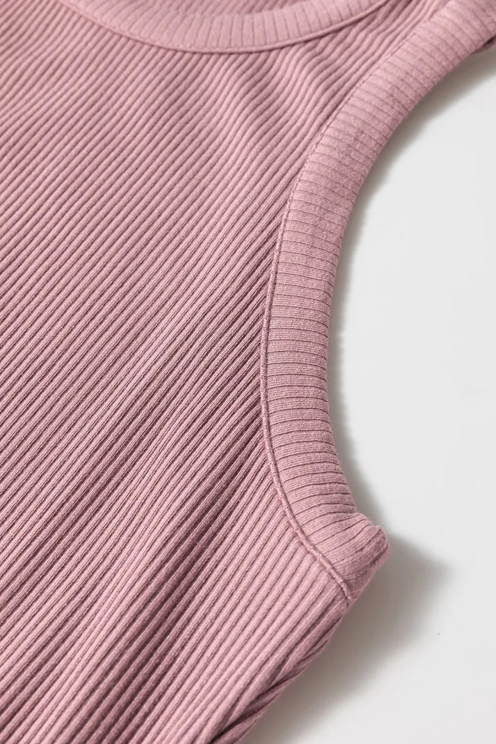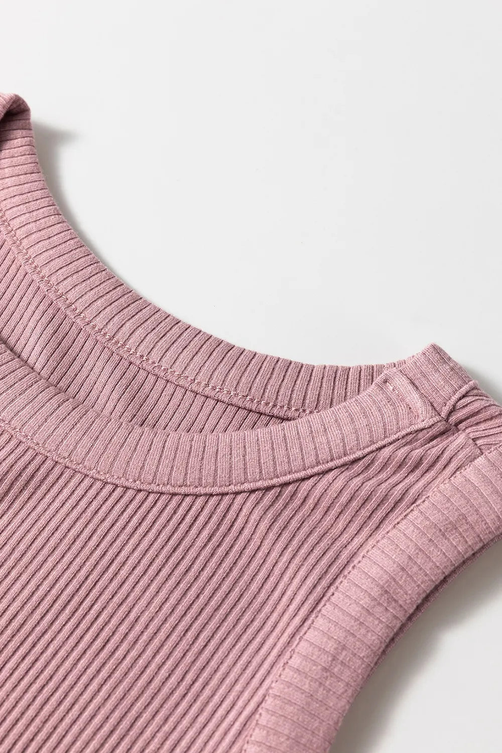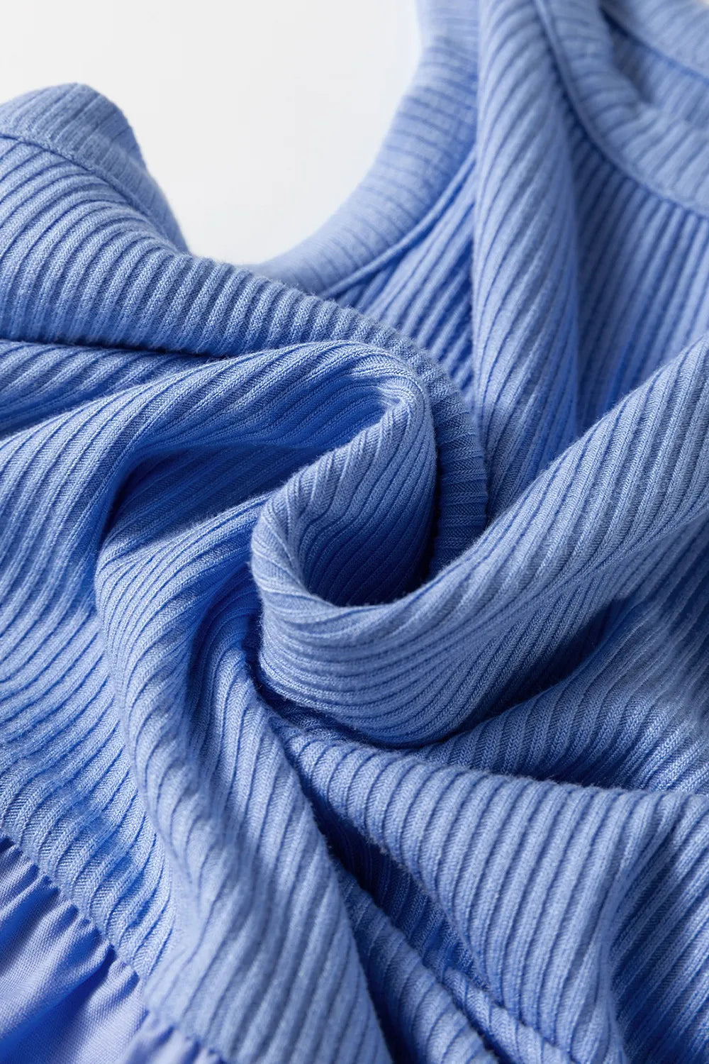 Ribbed Vest Patchwork Tiered Midi Dress with Pockets