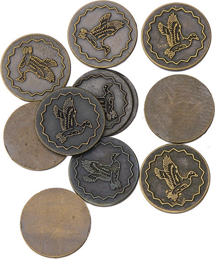 Round design. Antique brass finish. 7/16" overall. Embossed with flying duck. Package of 10.Please note that this collection requires a... Read more