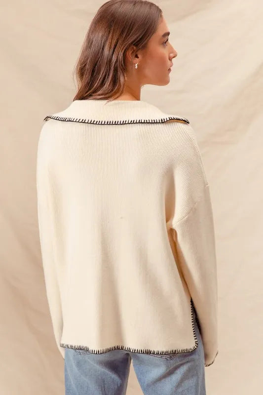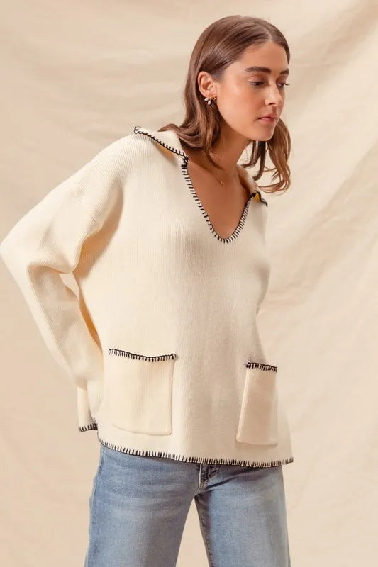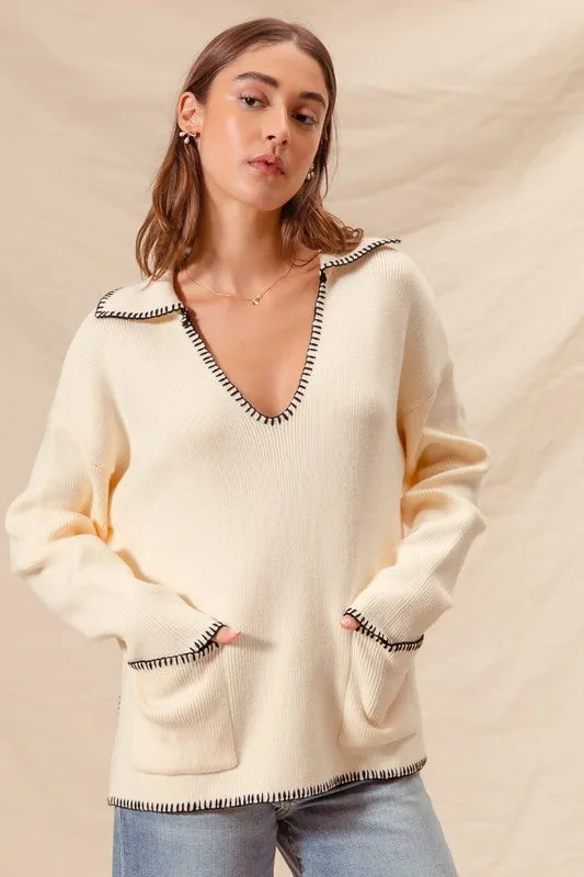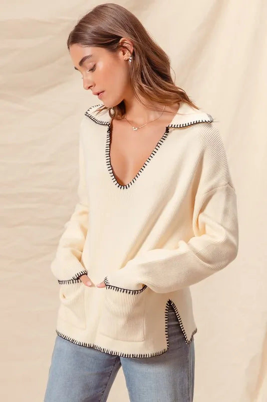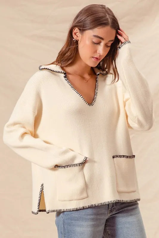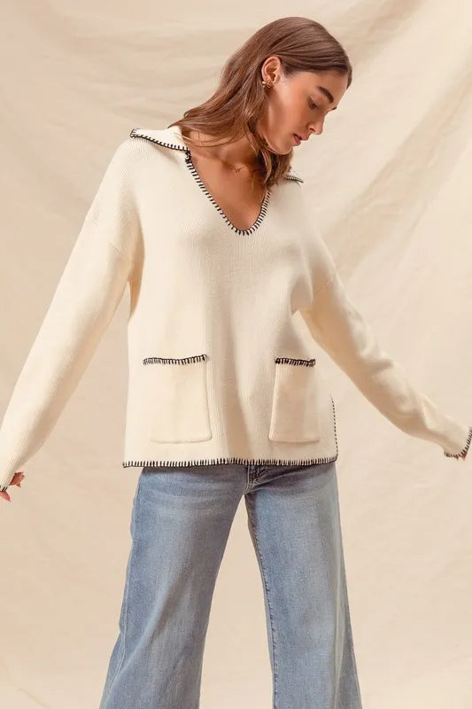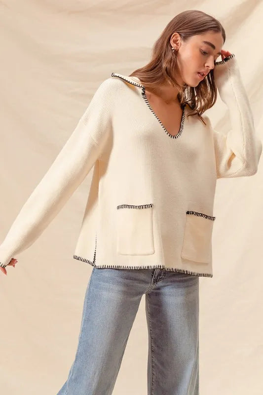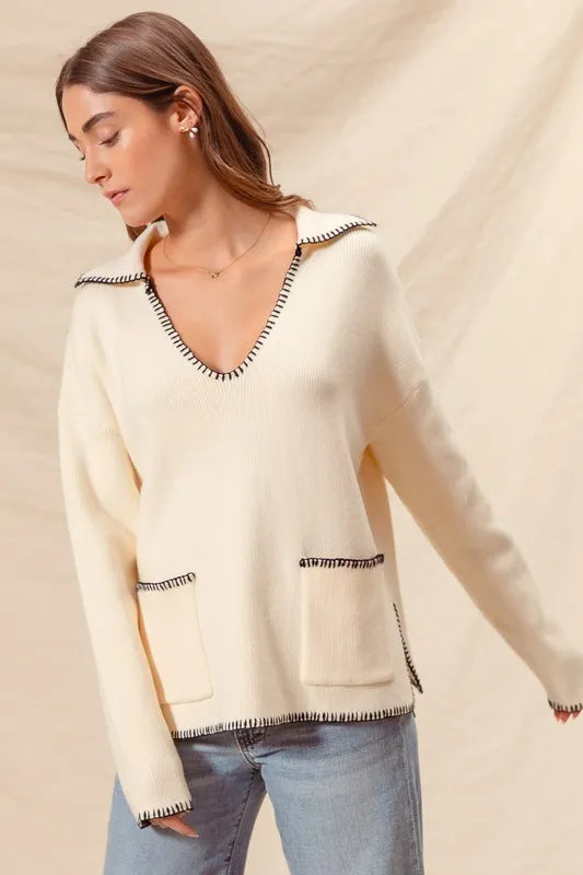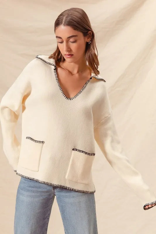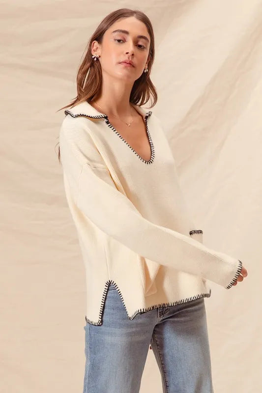 Add a touch of boho-chic to your wardrobe with this Contrast Blanket Stitch Sweater. The blanket stitch detailing brings a... Read more