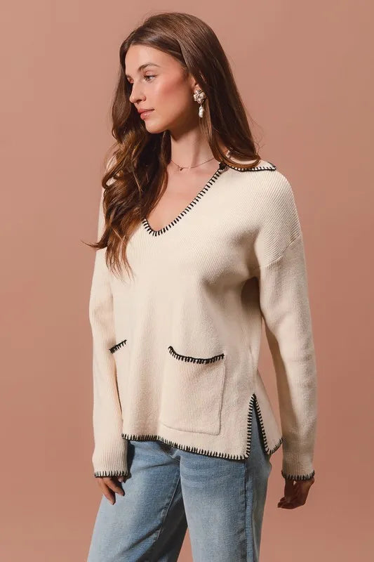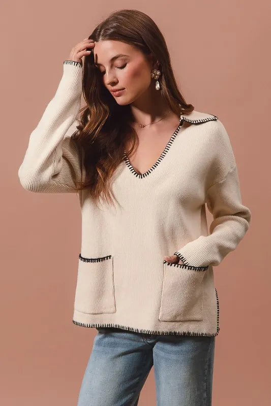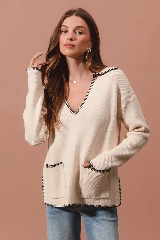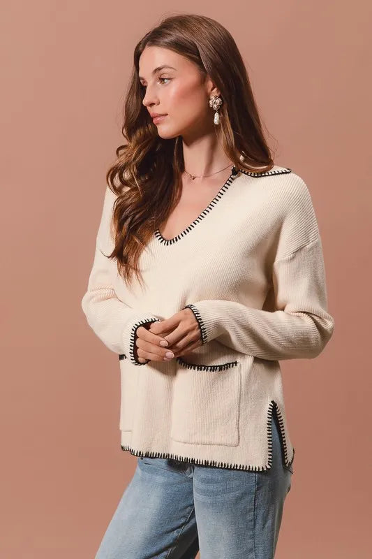 Add a touch of boho-chic to your wardrobe with this Contrast Blanket Stitch Sweater. The blanket stitch detailing brings a... Read more