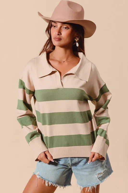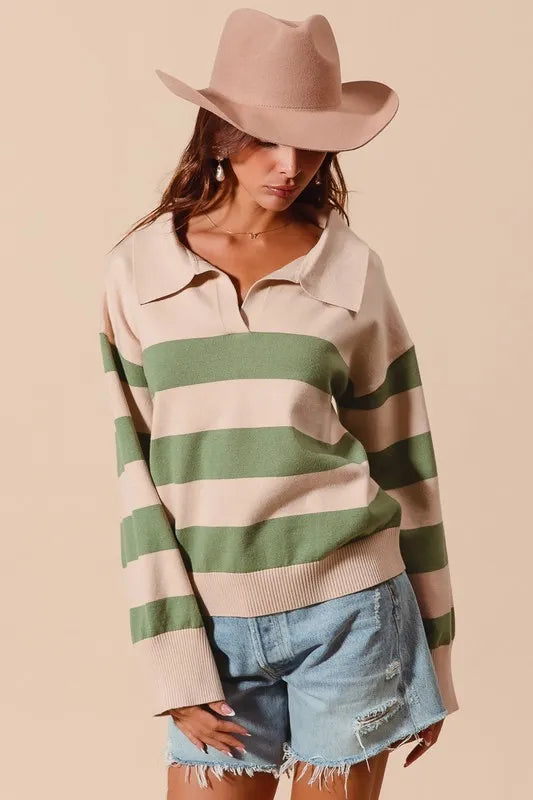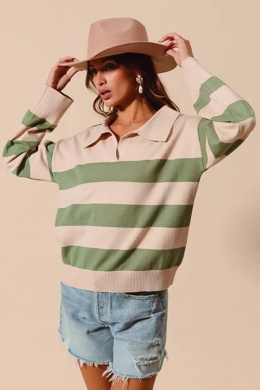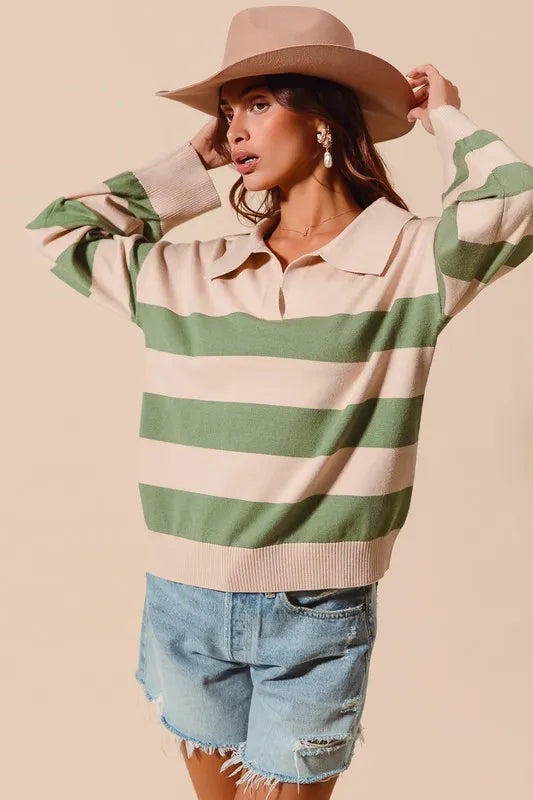 SO ME Wide Stripe Polo Shirt Sweater Top