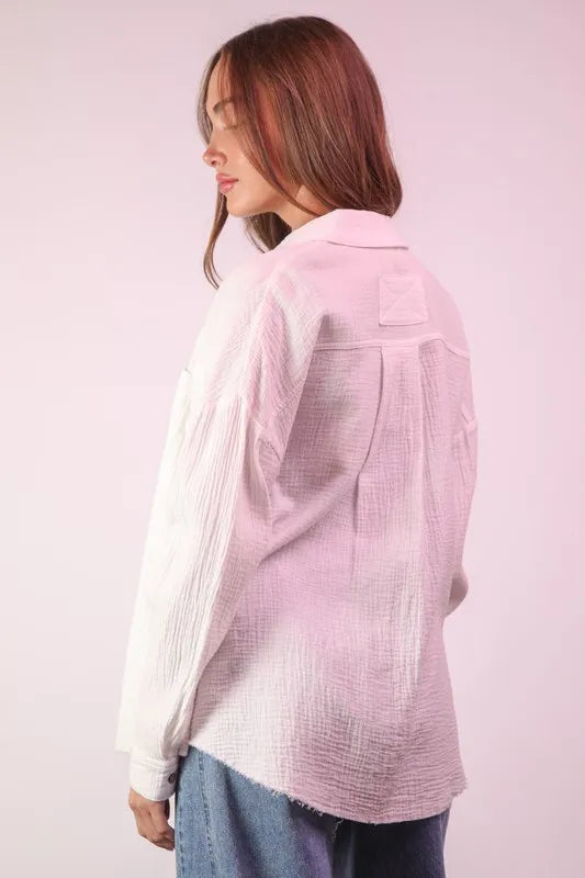 A mineral washed gauze shirt top has a soft, vintage look. It is lightweight and perfect for casual outfits. Pair... Read more