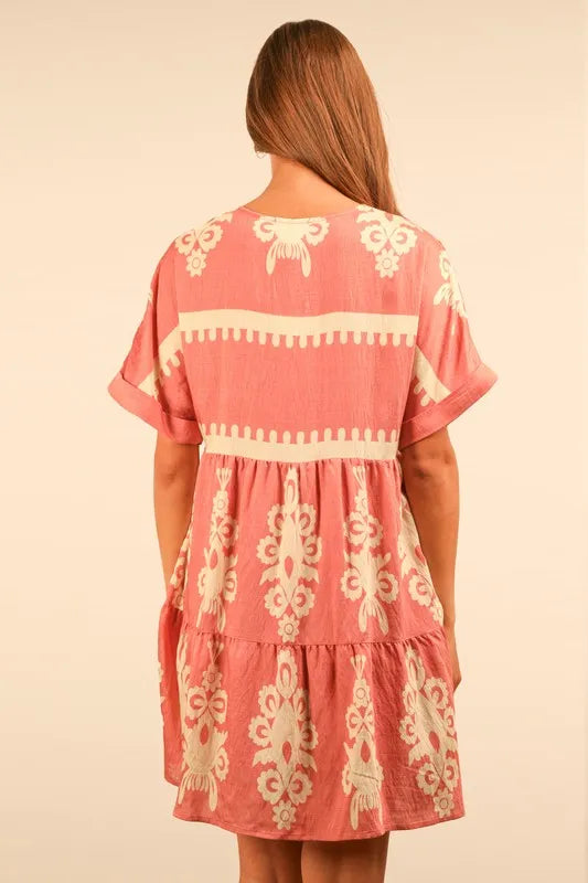 VERY J Plus Size Printed V-Neck Woven Mini Dress
