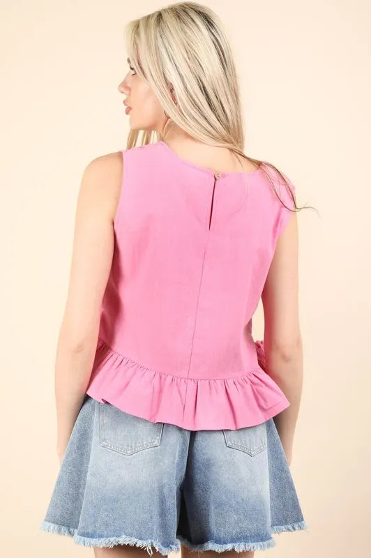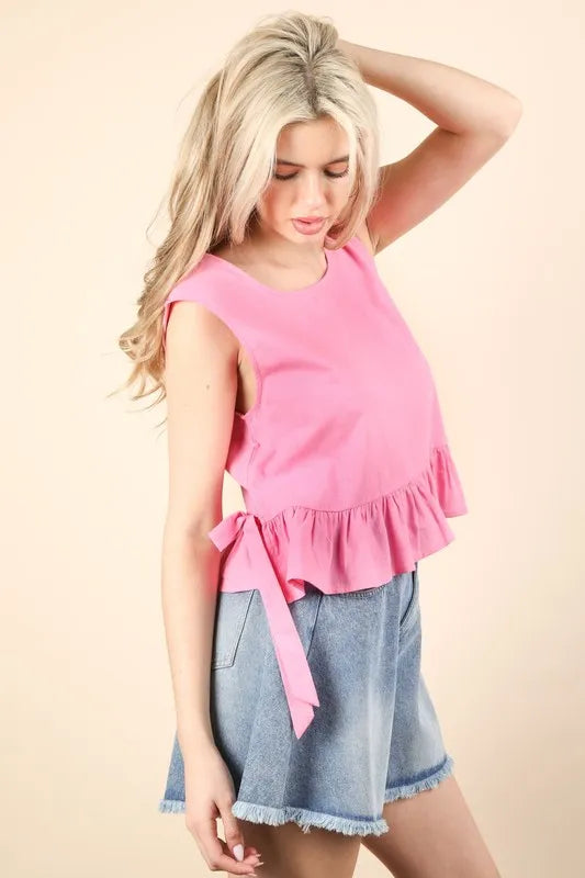VERY J Side Tie Detail Ruffled Sleeveless Top