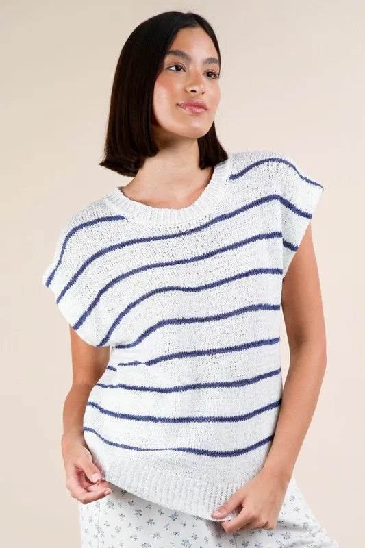 The Striped Knit Sweater Vest Top is a trendy and versatile addition to your wardrobe. Featuring a striped knit design,... Read more