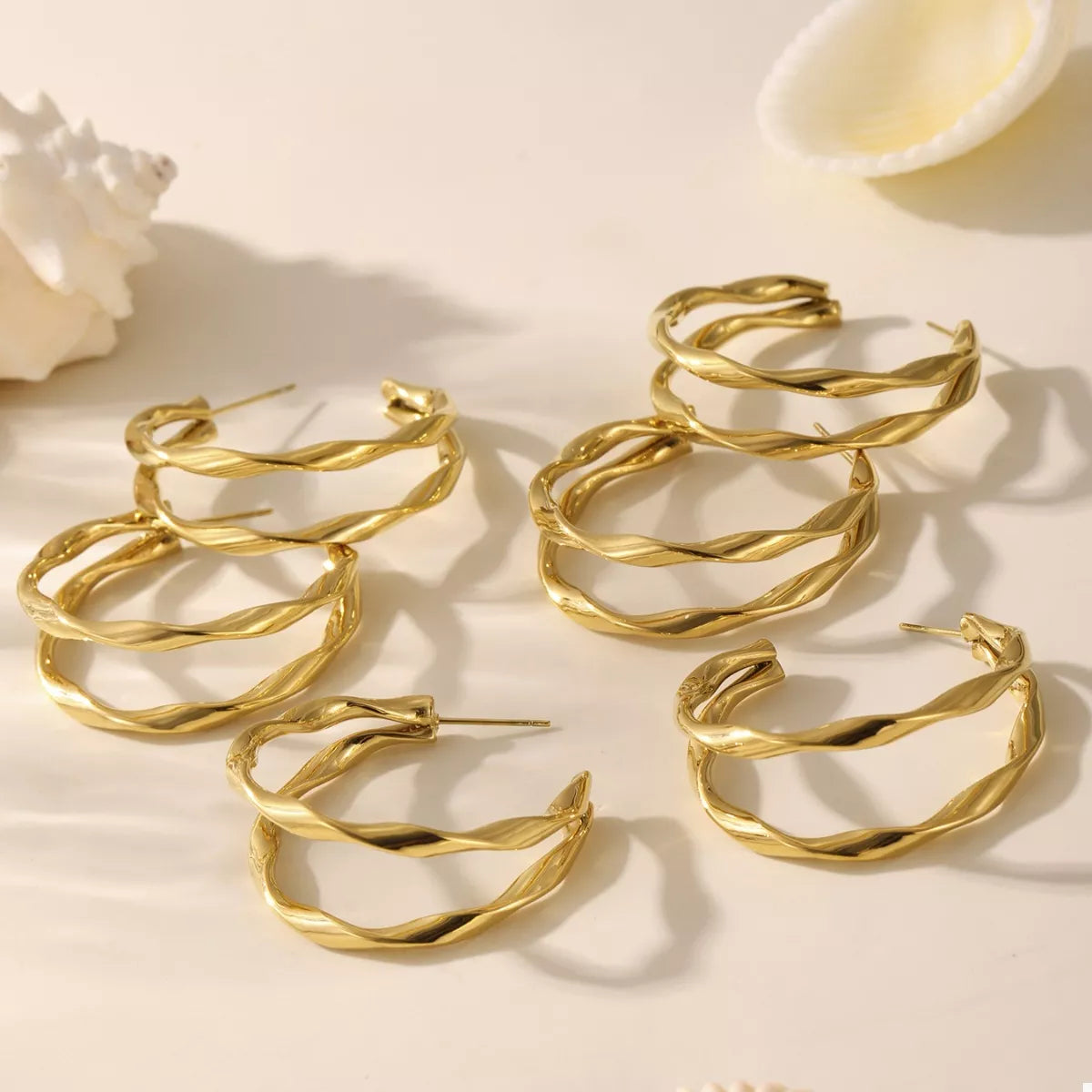 18K Gold-Plated Chunky Twisted Hoop Earrings