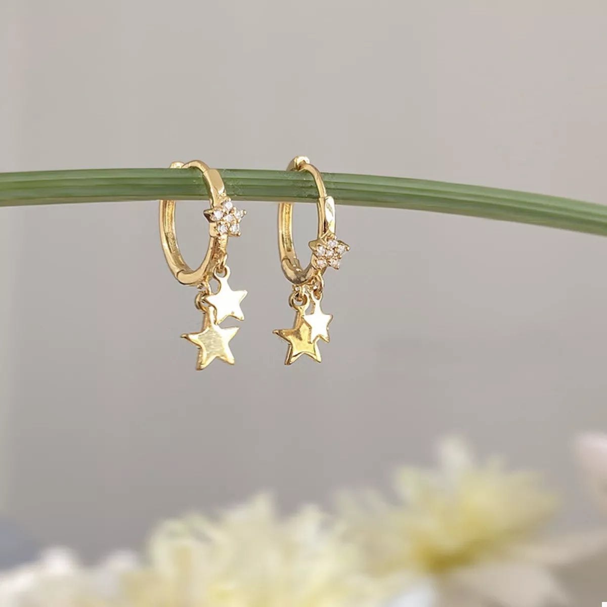 18K Gold-Plated Star Charm Hoop Earrings