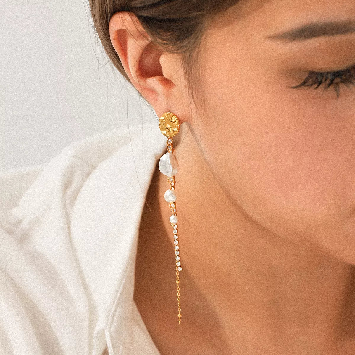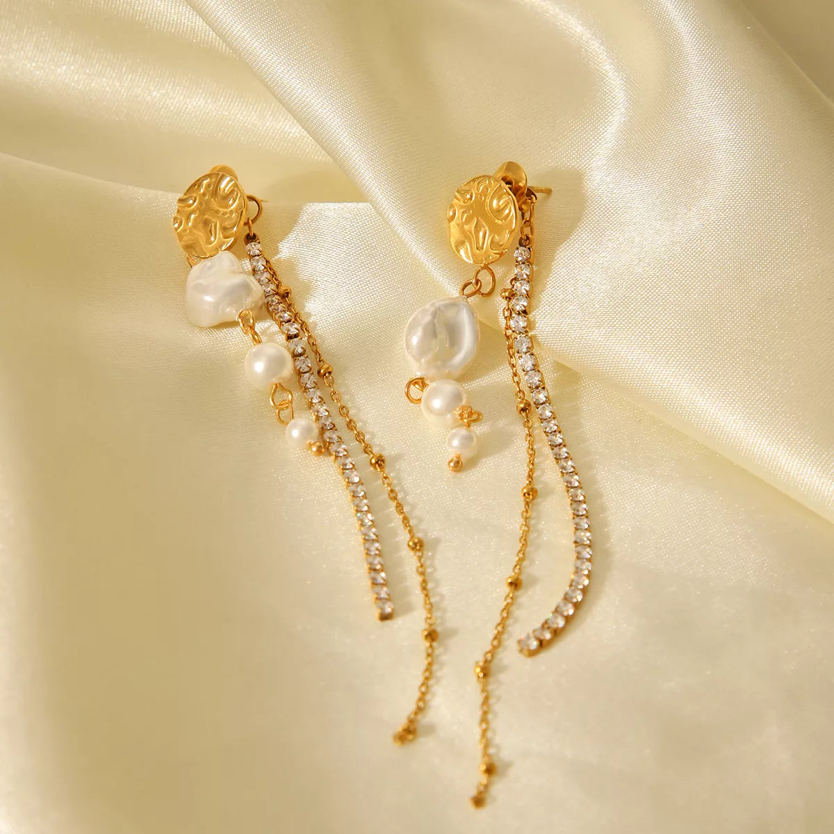 18K Gold-Plated Zircon Pearl Chain Earrings