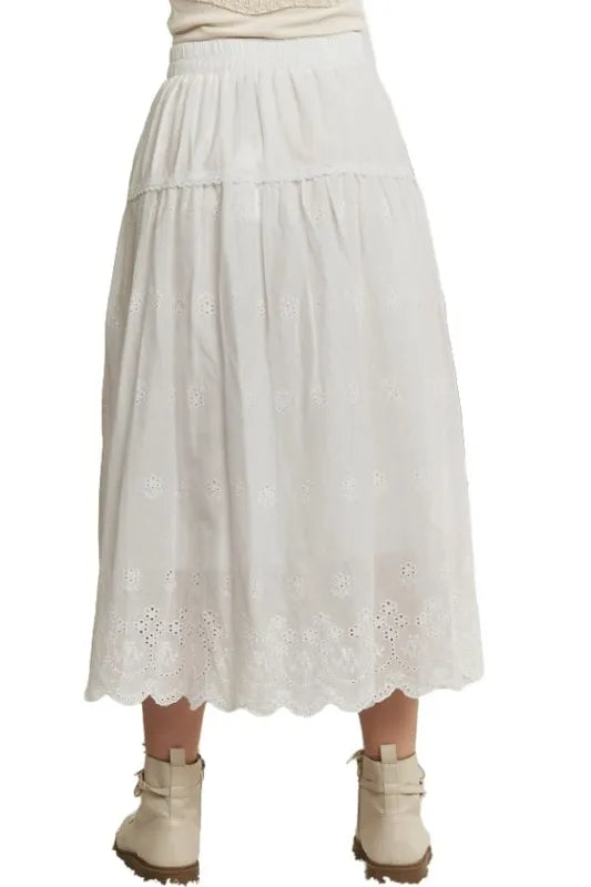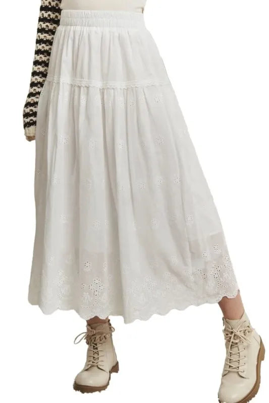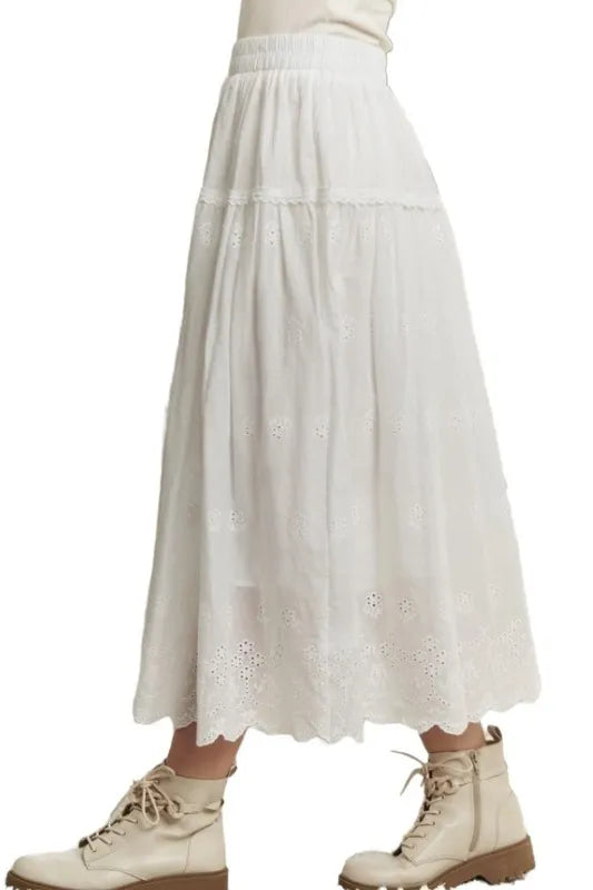 ADORA Elastic Waistband Midi Tiered Midi Skirt