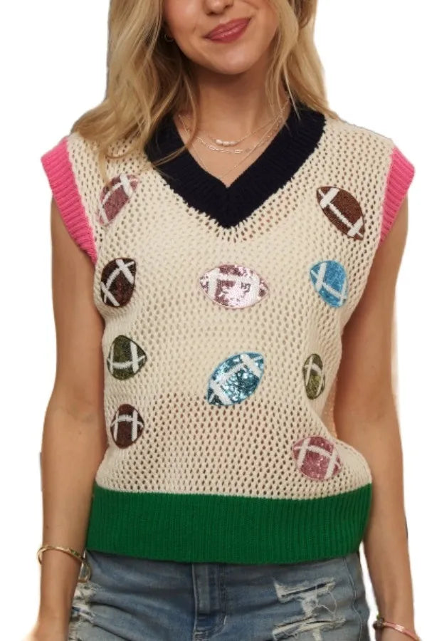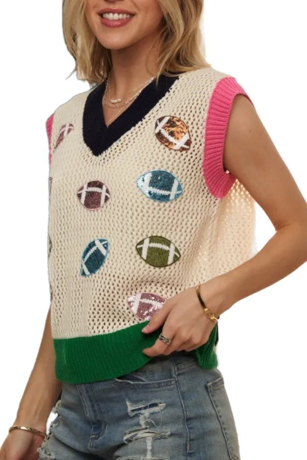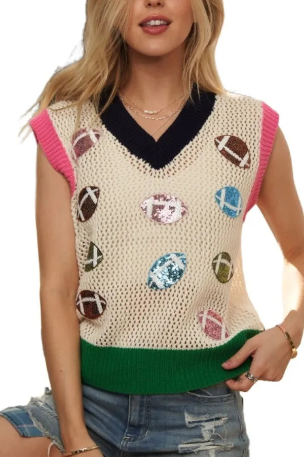 The Football Sequins Patch Knit Vest is a fun and sporty addition to your wardrobe. This knit vest features a... Leer más...