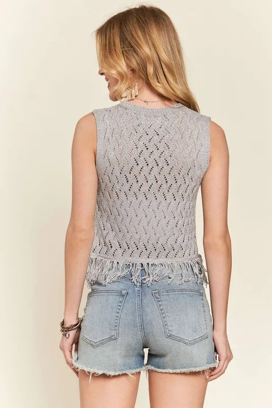 ADORA Fringe Hem Lurex Crochet Vest Top