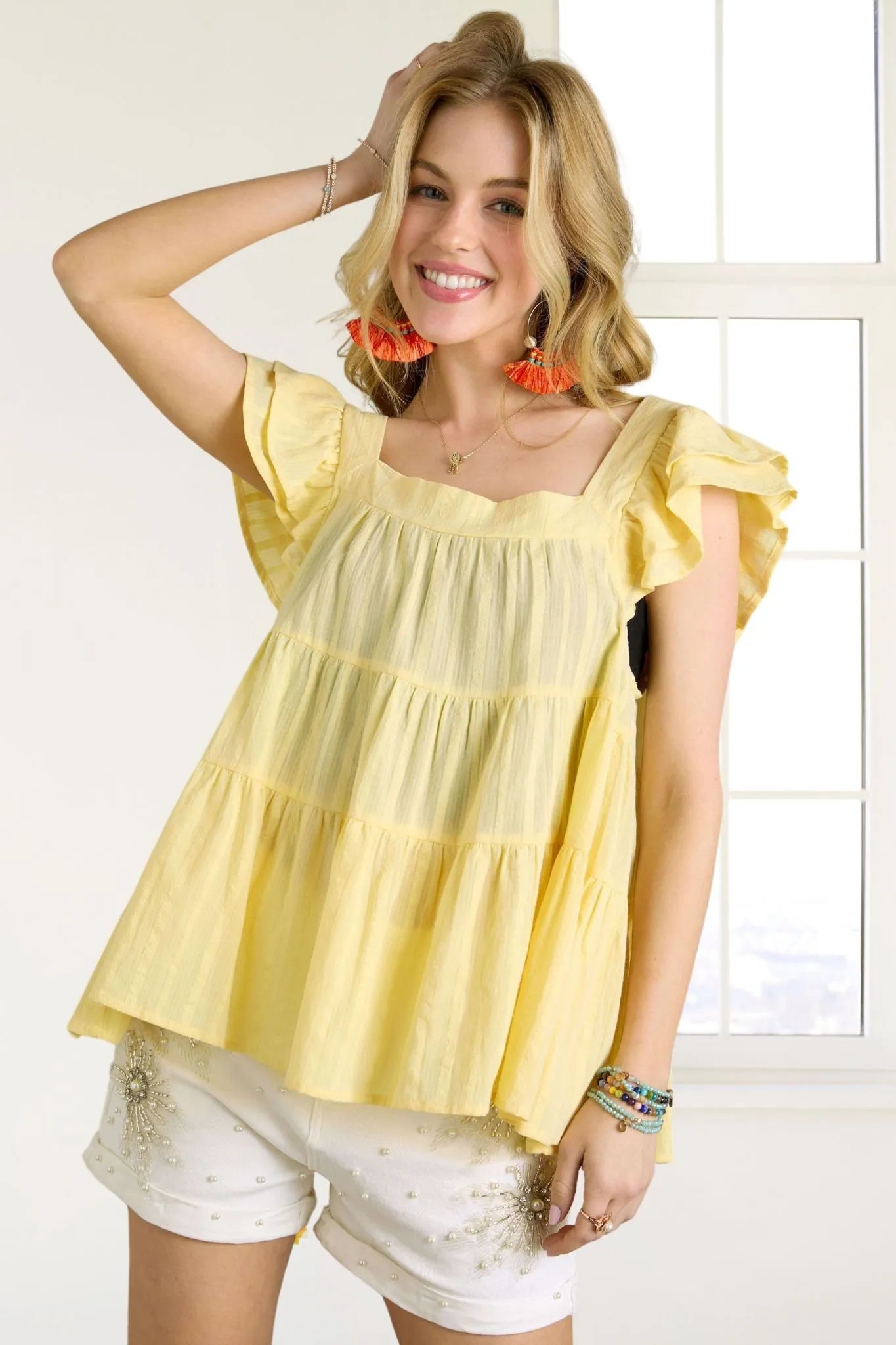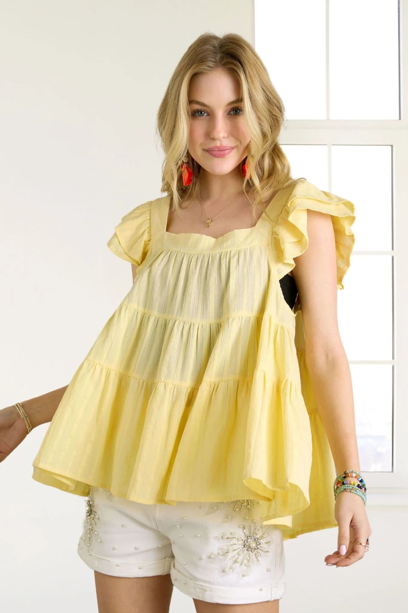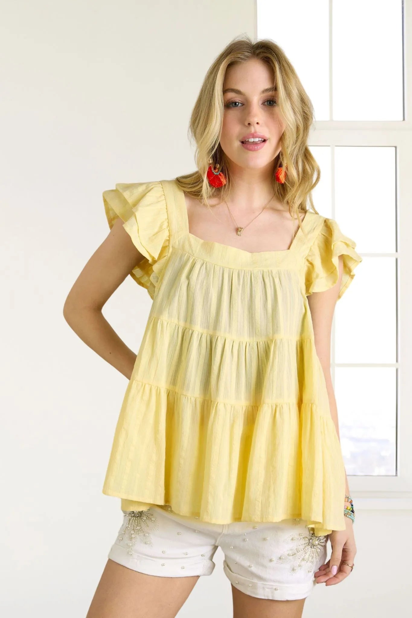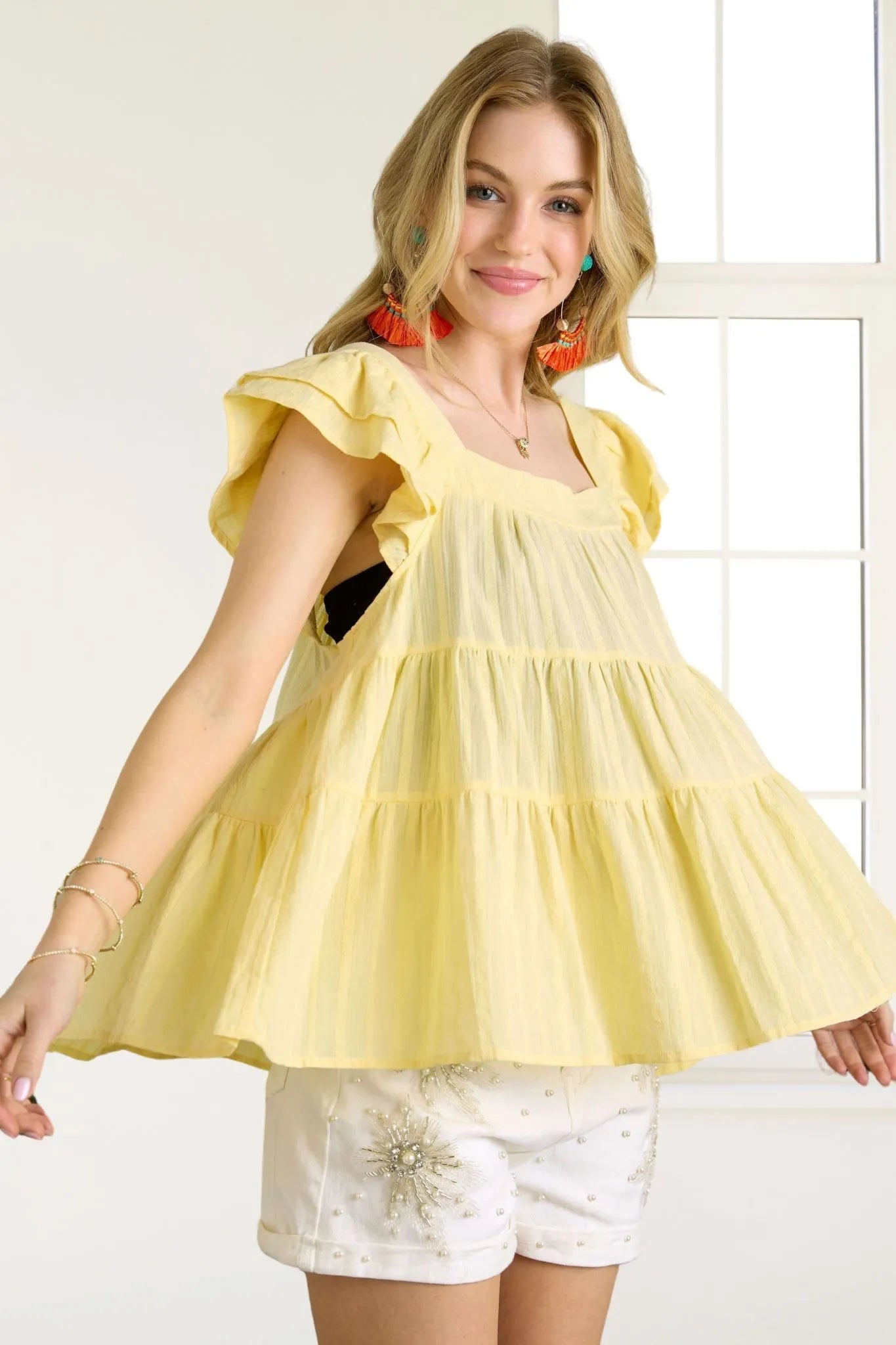 ADORA Ruffle Sleeve Babydoll Tunic Top