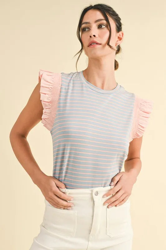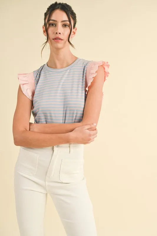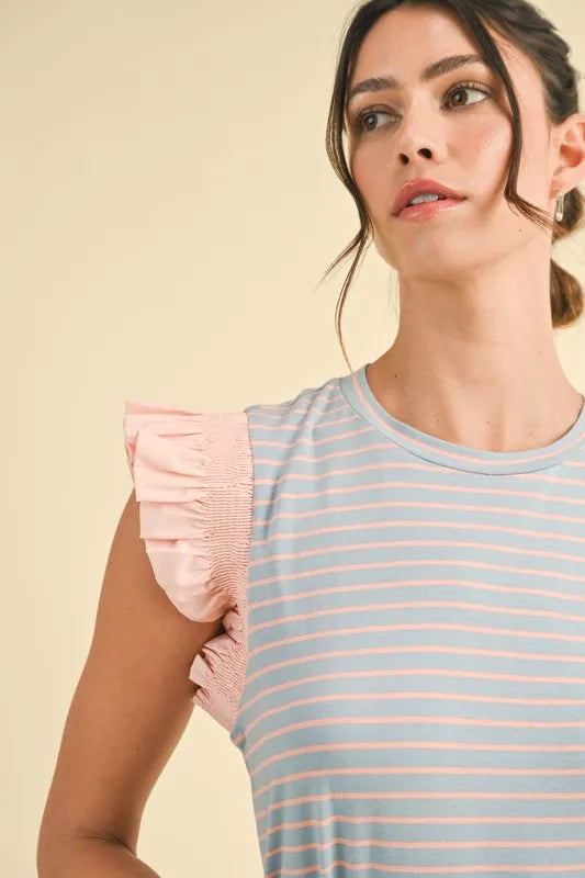 Annie Wear Mix Media Ruffle Sleeve Striped Knit Top