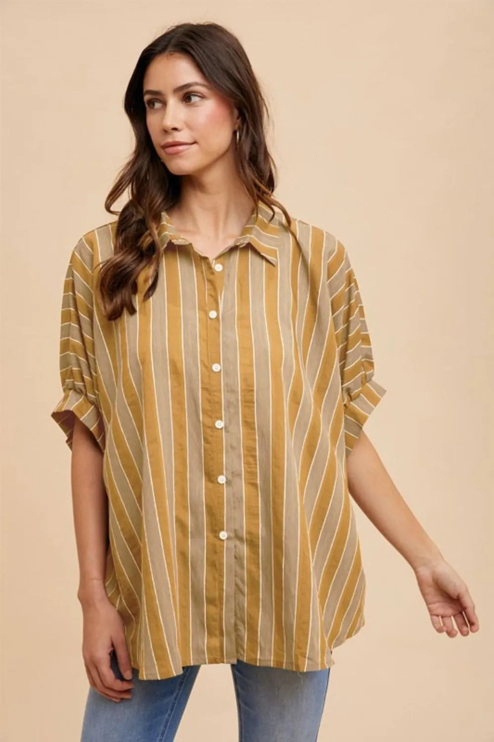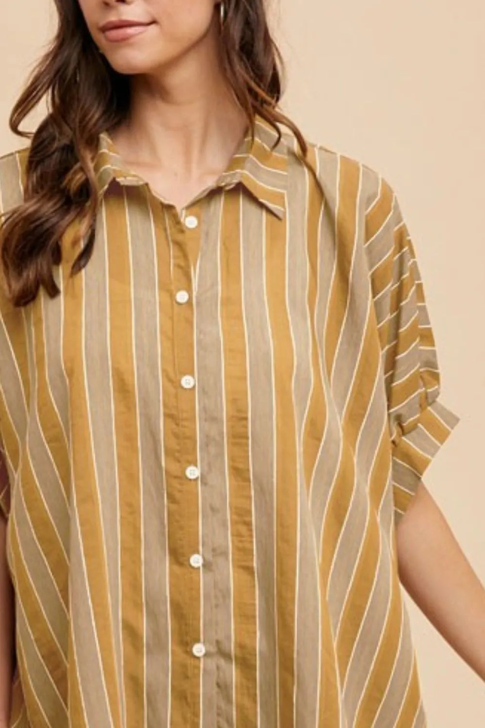 Annie Wear Oversized Drop Shoulder Striped Woven Shirt