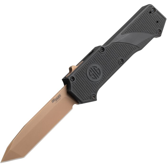 Automatic opening. 5" (12.7cm) closed. 3.5" (8.89cm) dark earth PVD coated CPM S30V stainless tanto blade. Black checkered G10 handle.... Leer más...