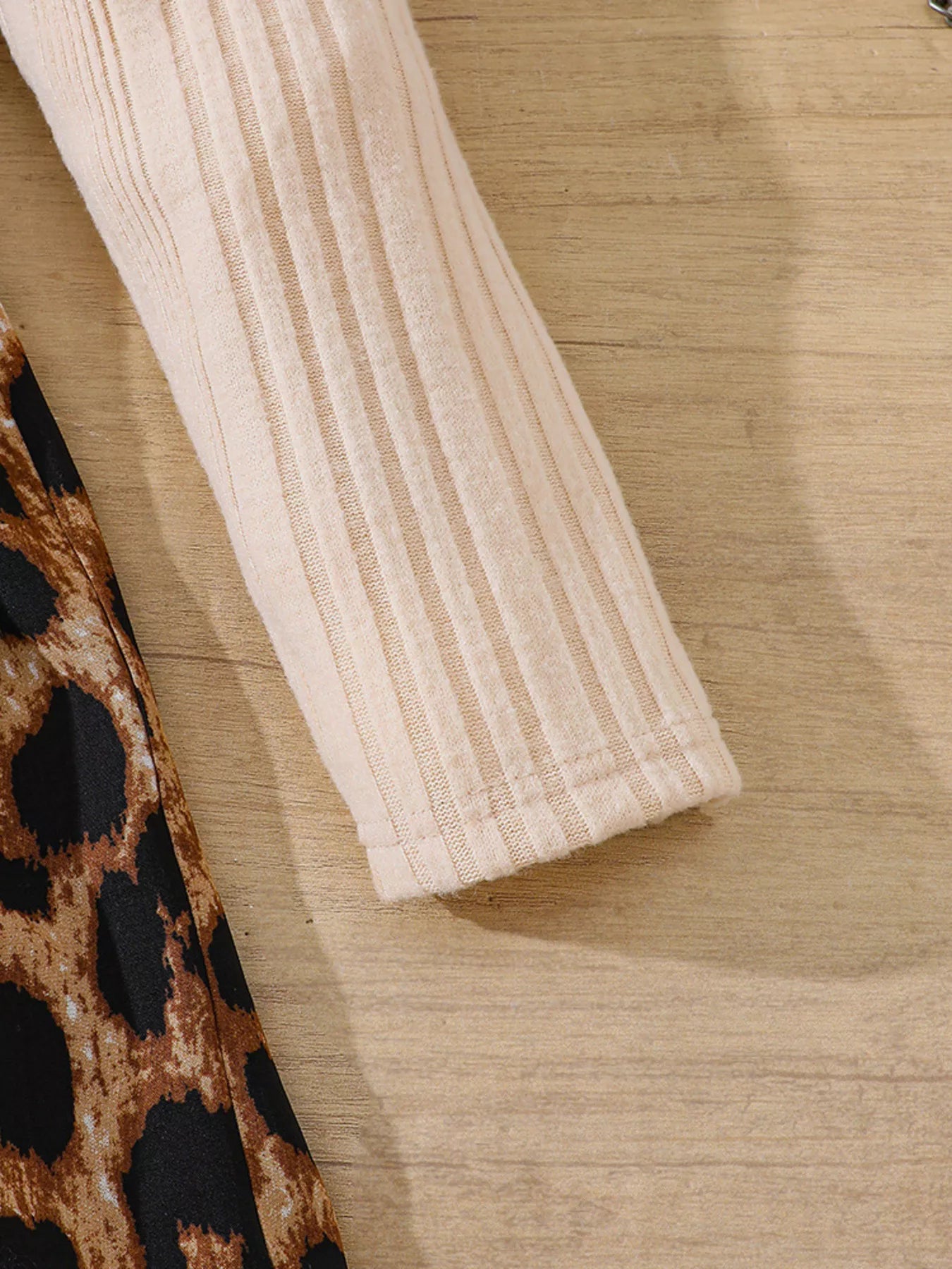 Children's Leopard Print Ruffle Collar Long Sleeve Dress