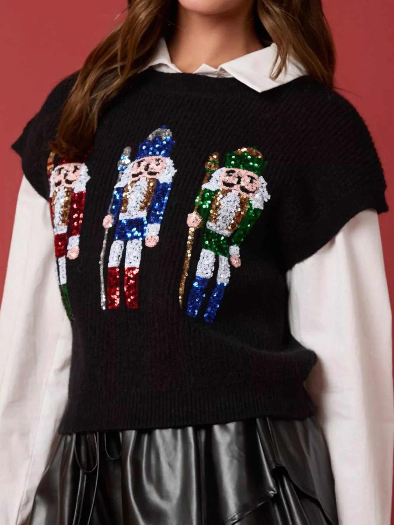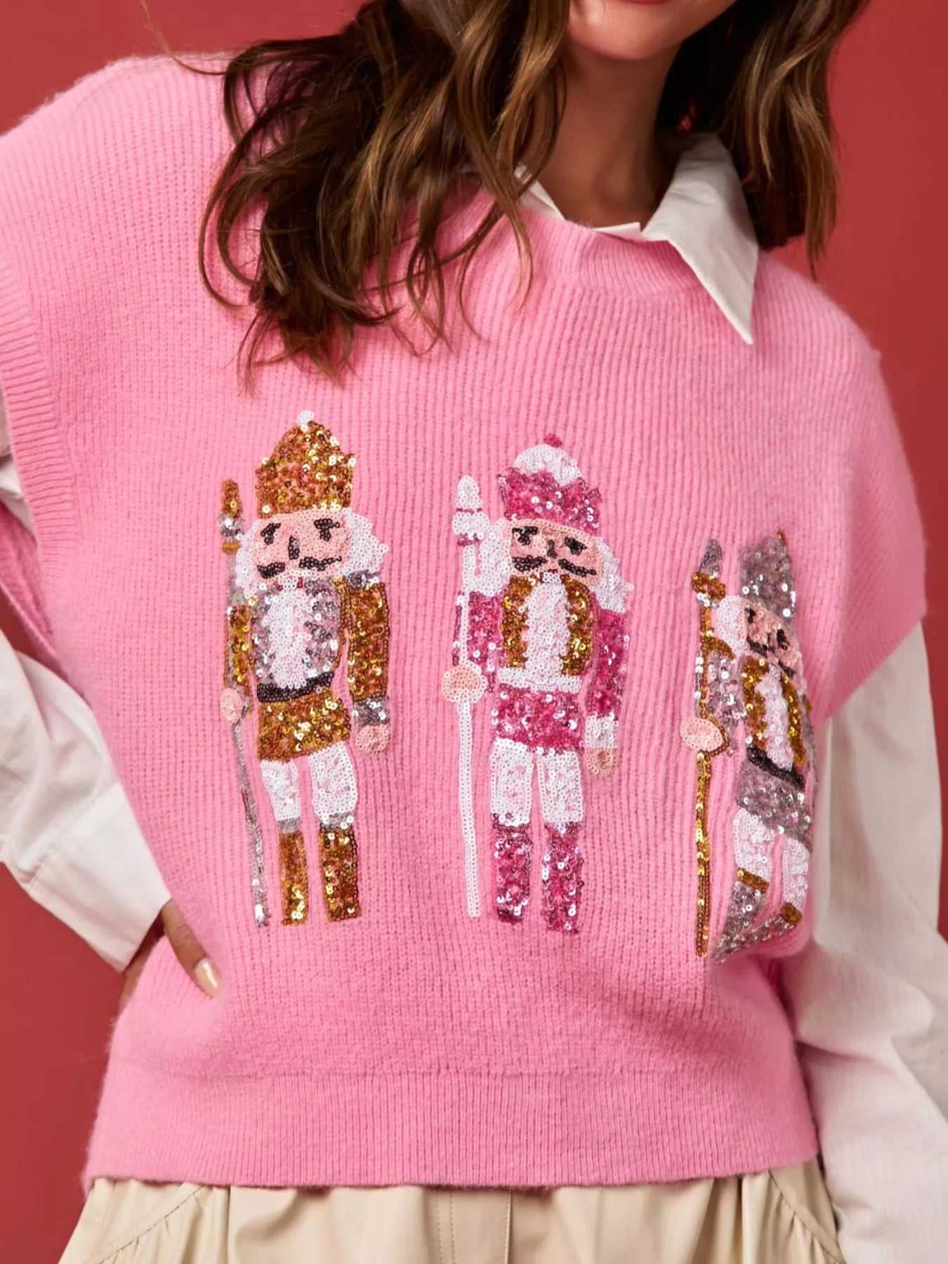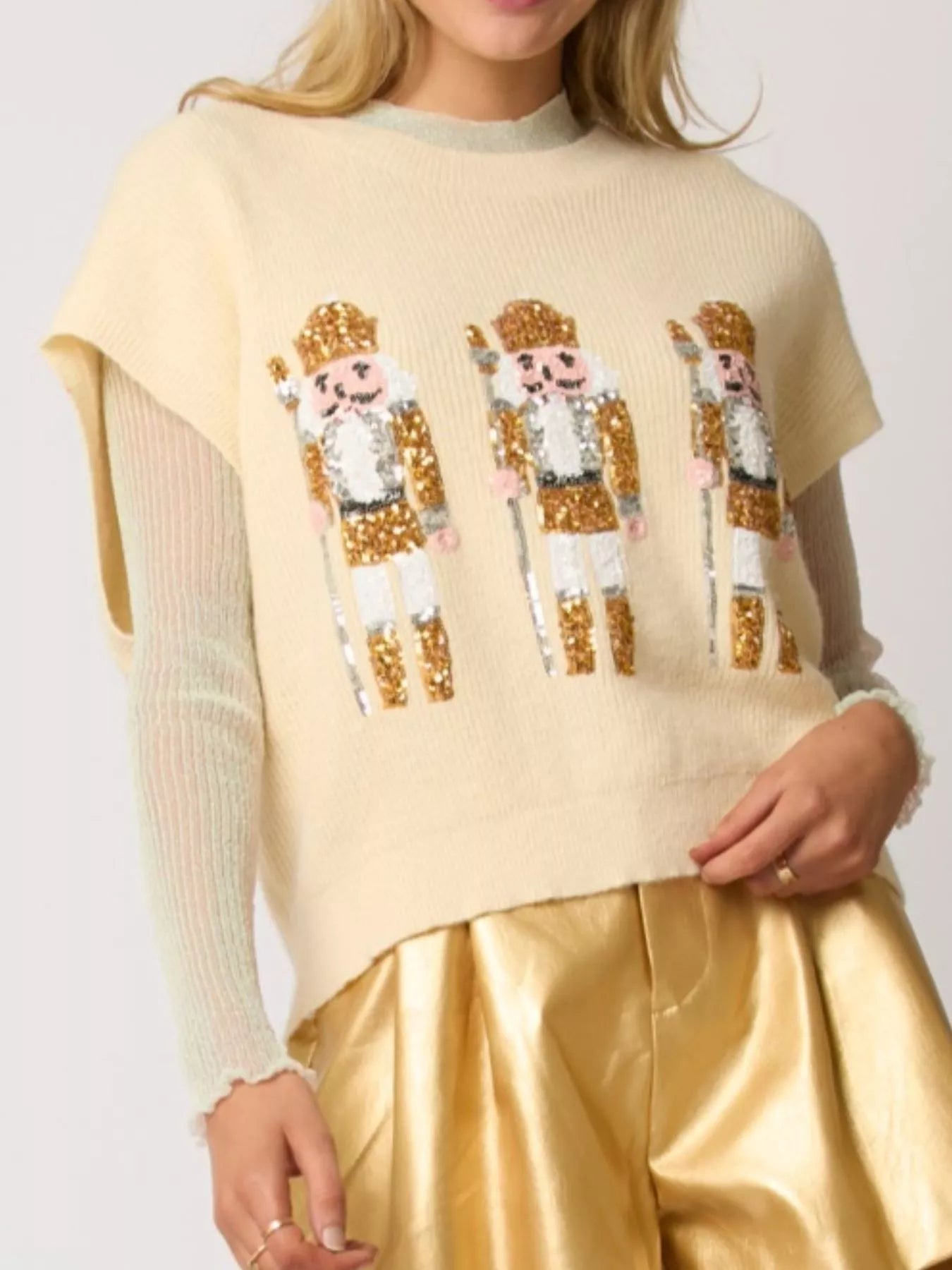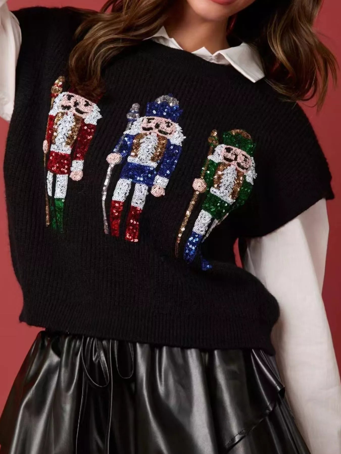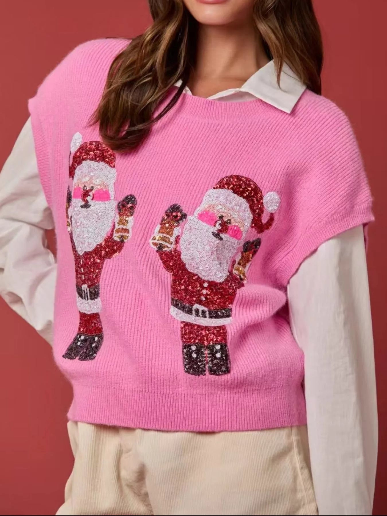Christmas Sequin Round Neck Sweater Vest