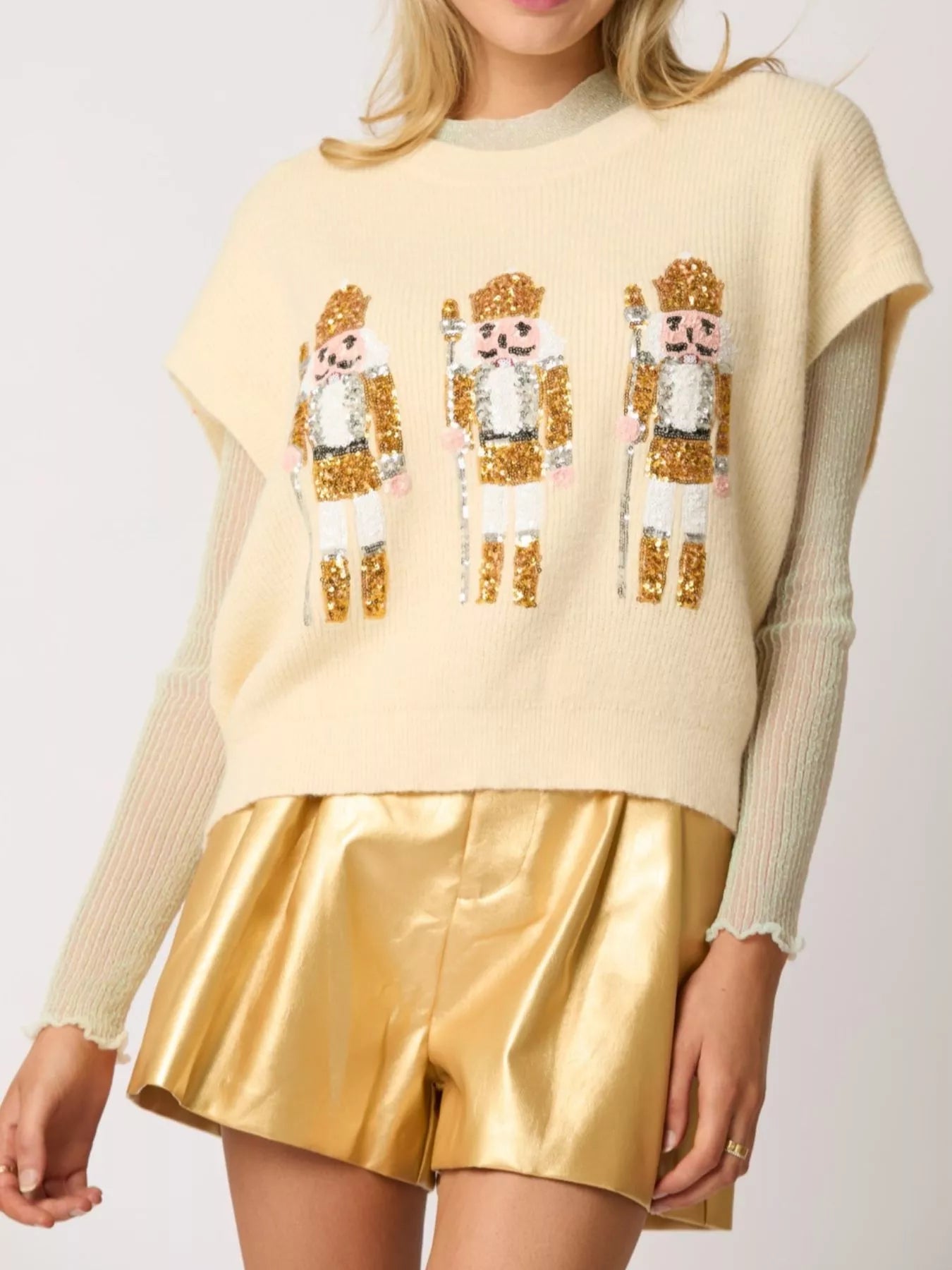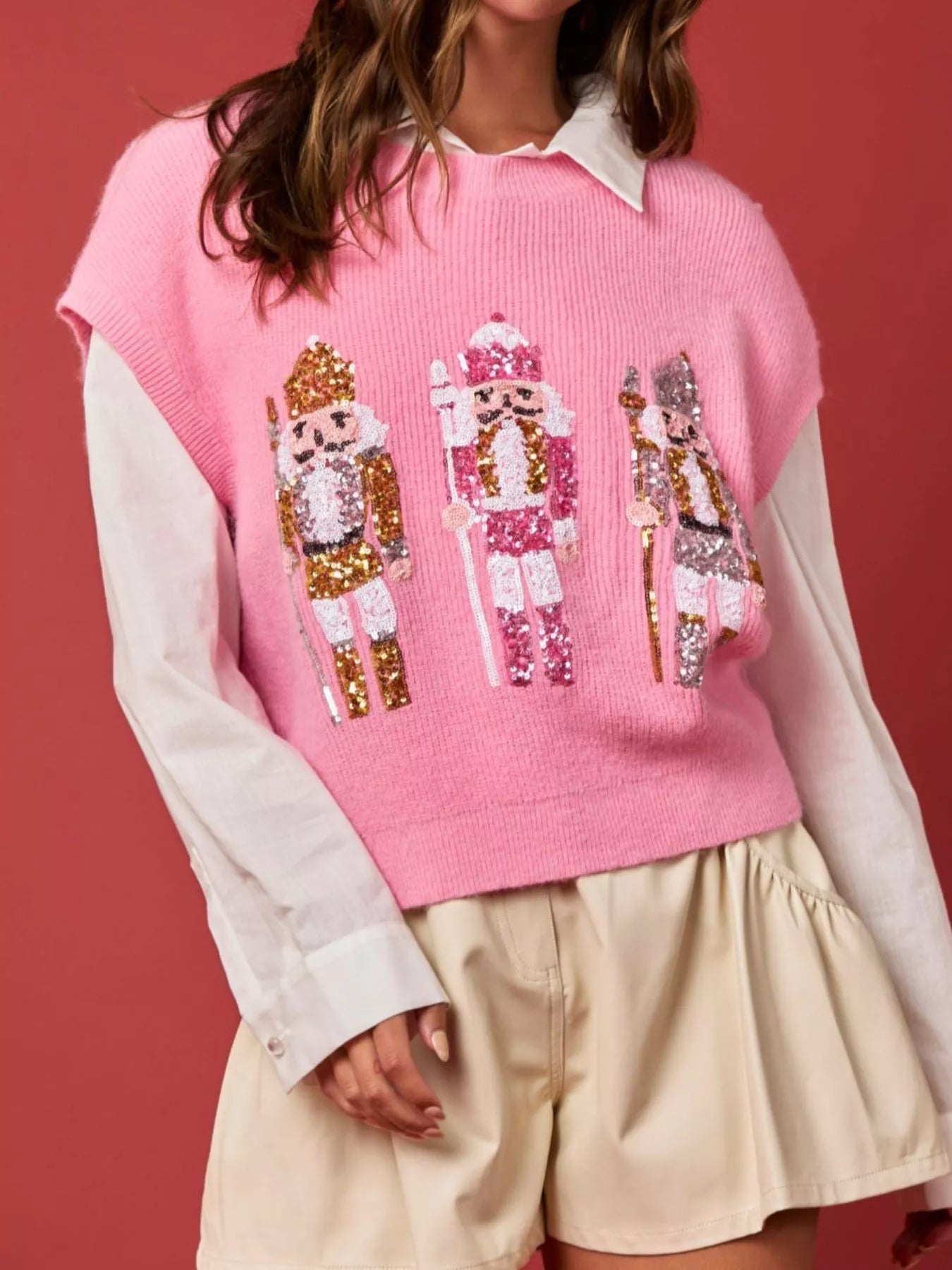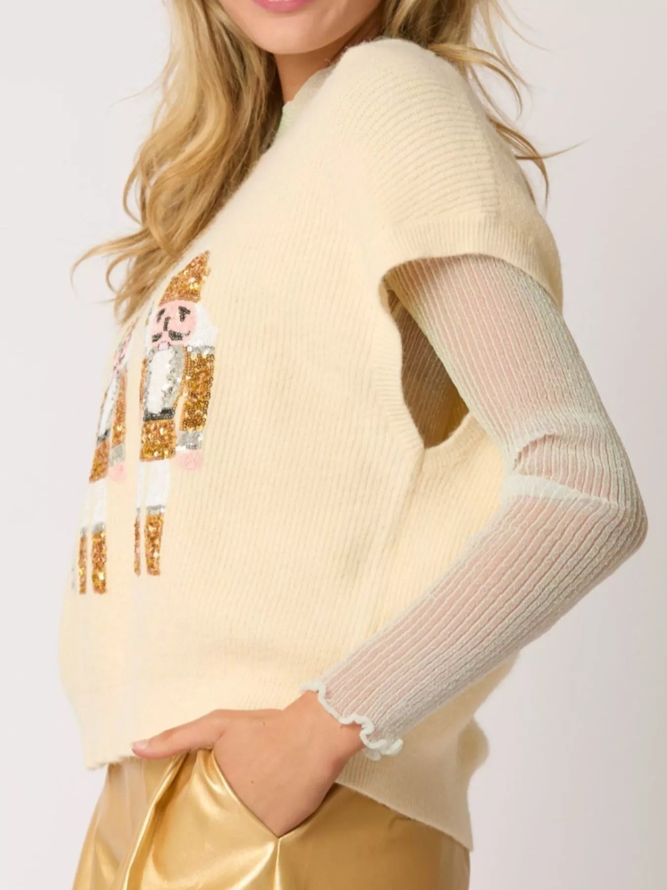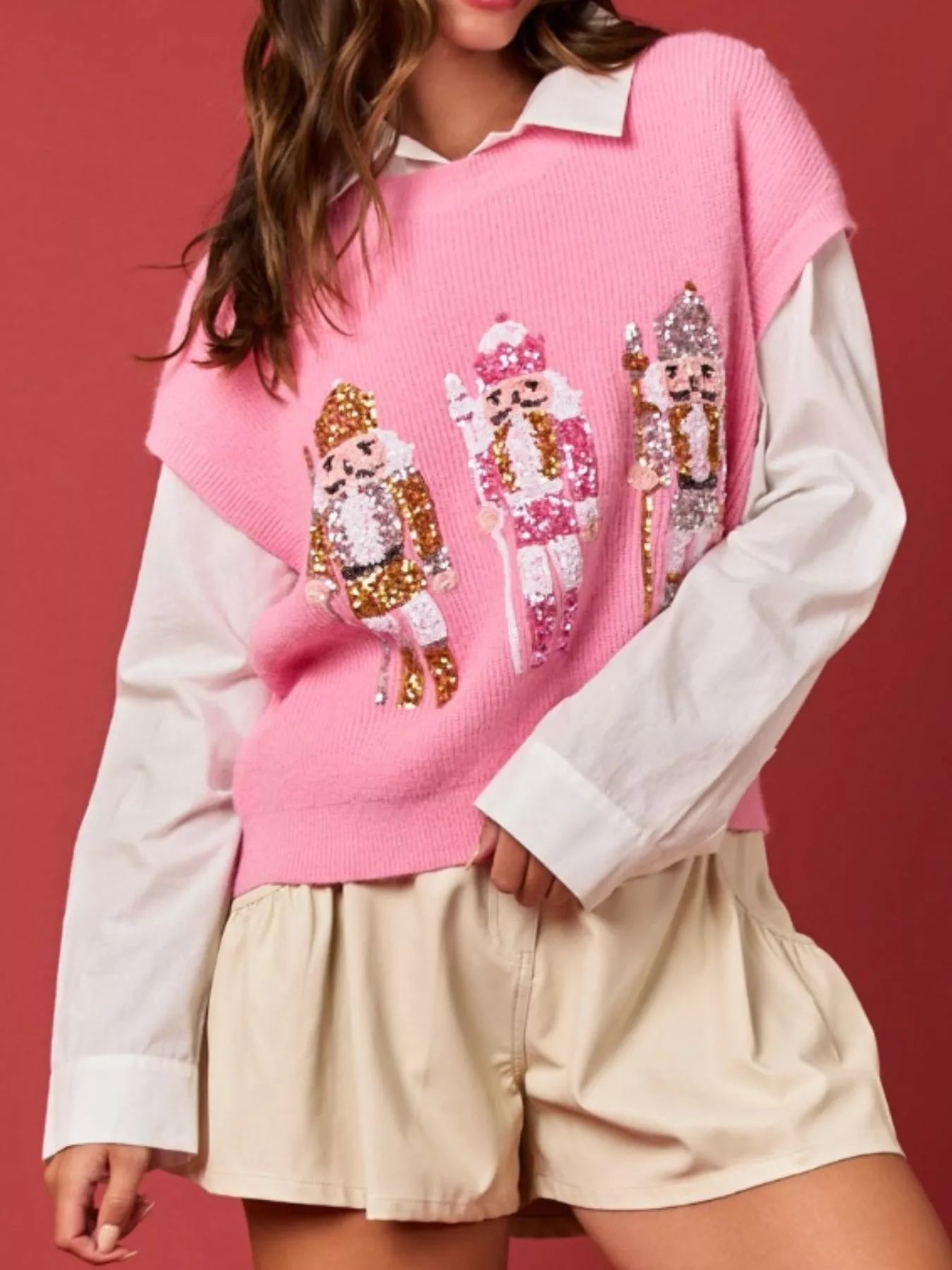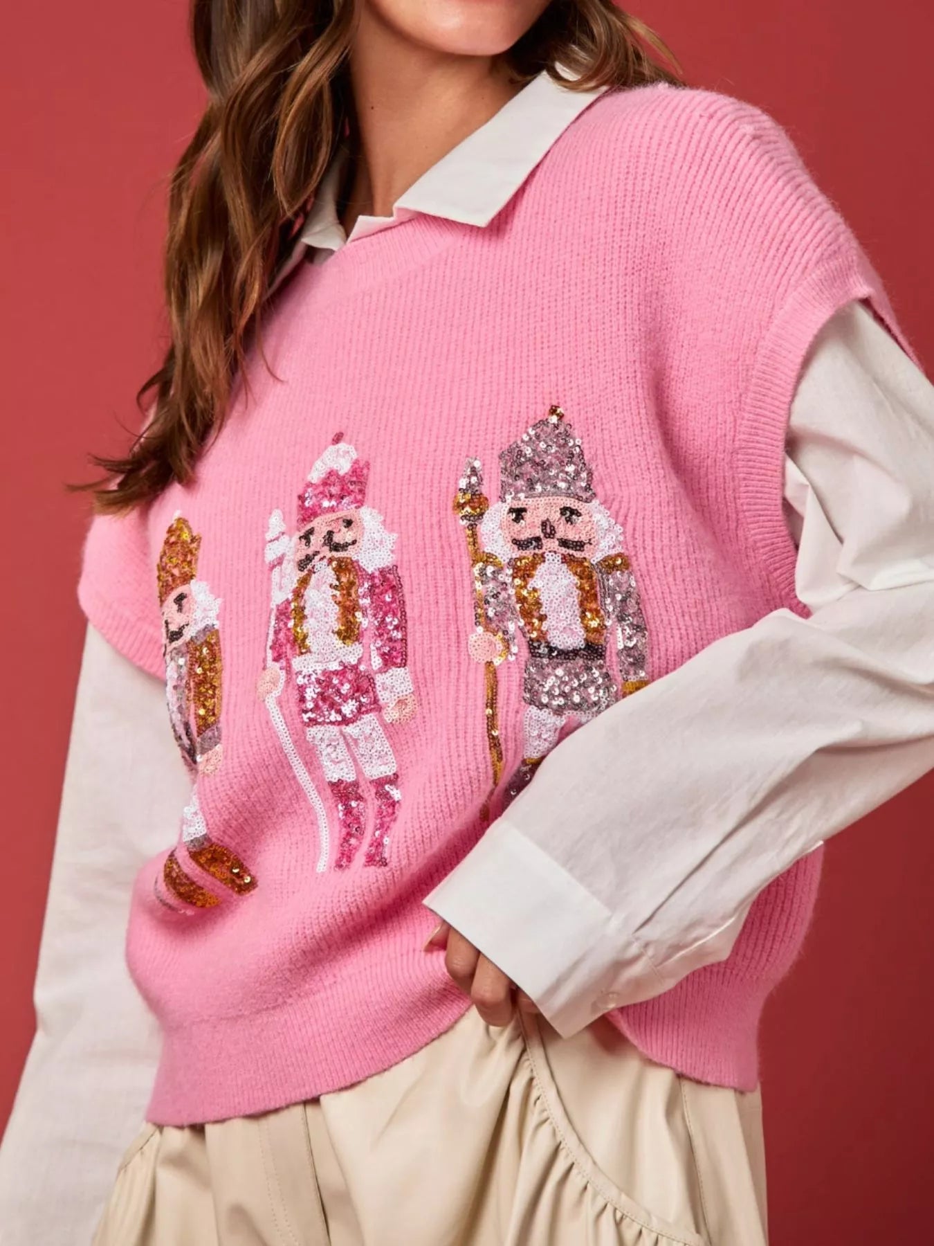 Christmas Sequin Round Neck Sweater Vest