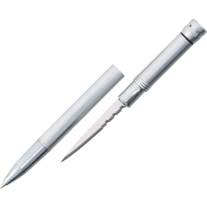 5 1/2" overall. Pull apart to reveal a 2 1/2" partially serrated blade. Blue ink. Twist top to illuminate white... Leer más...