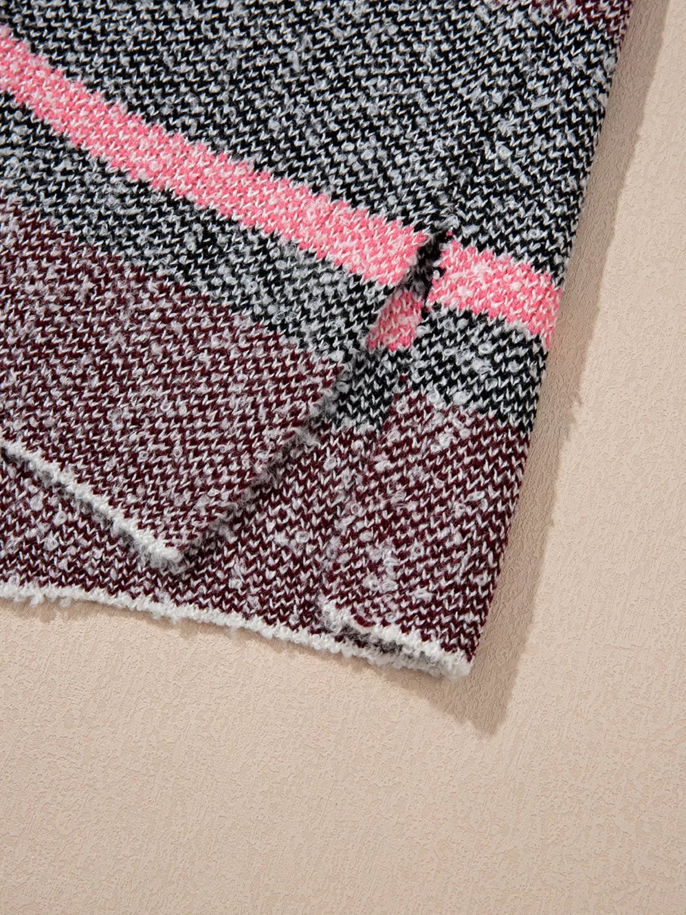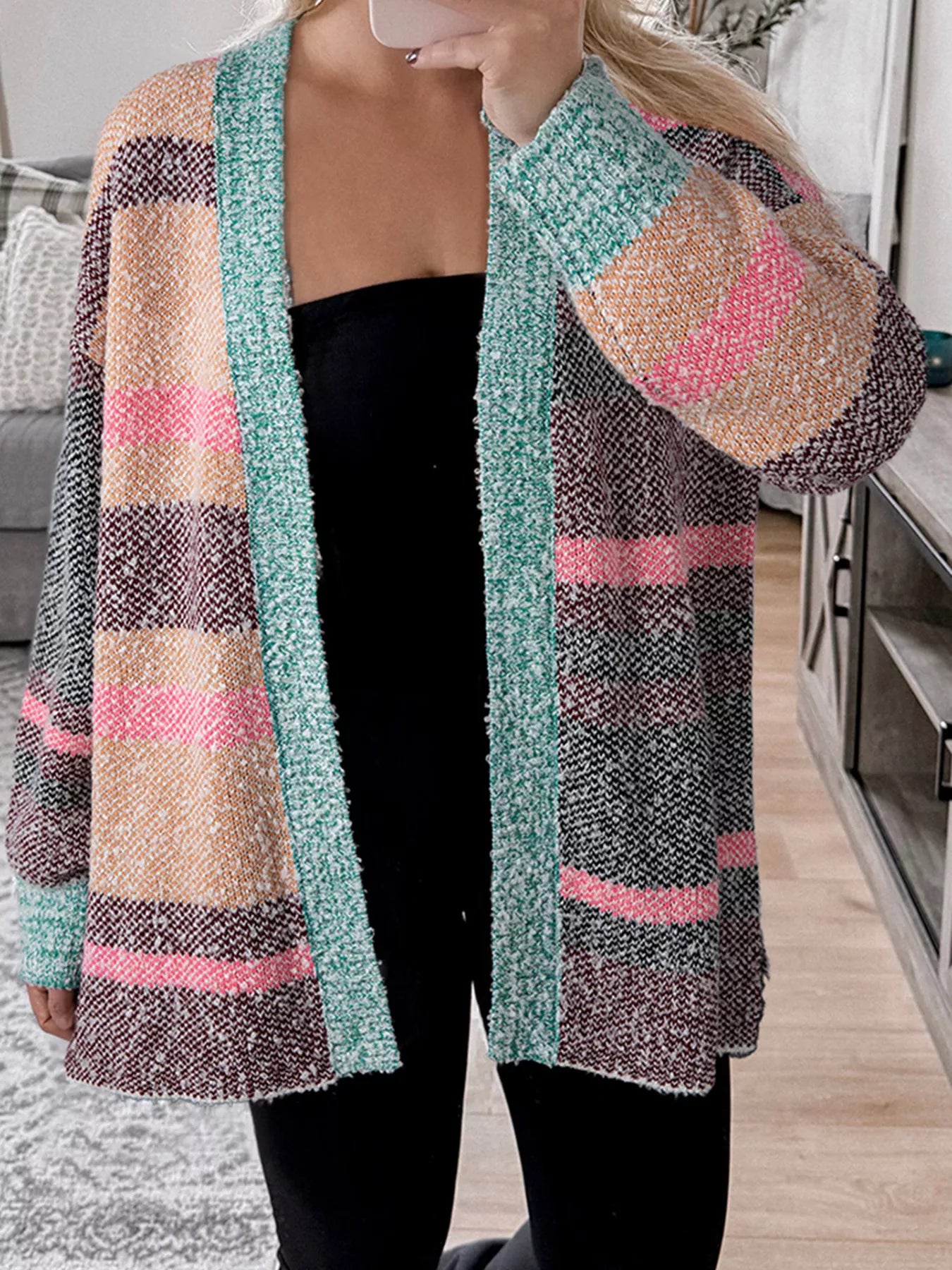Color Block Striped Side Slit Open Front Cardigan