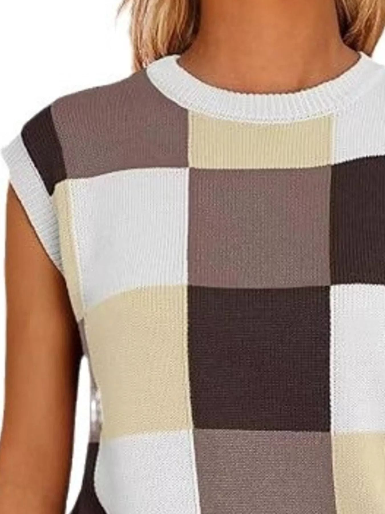 Colorful Checkered Knit Sweater Vest
