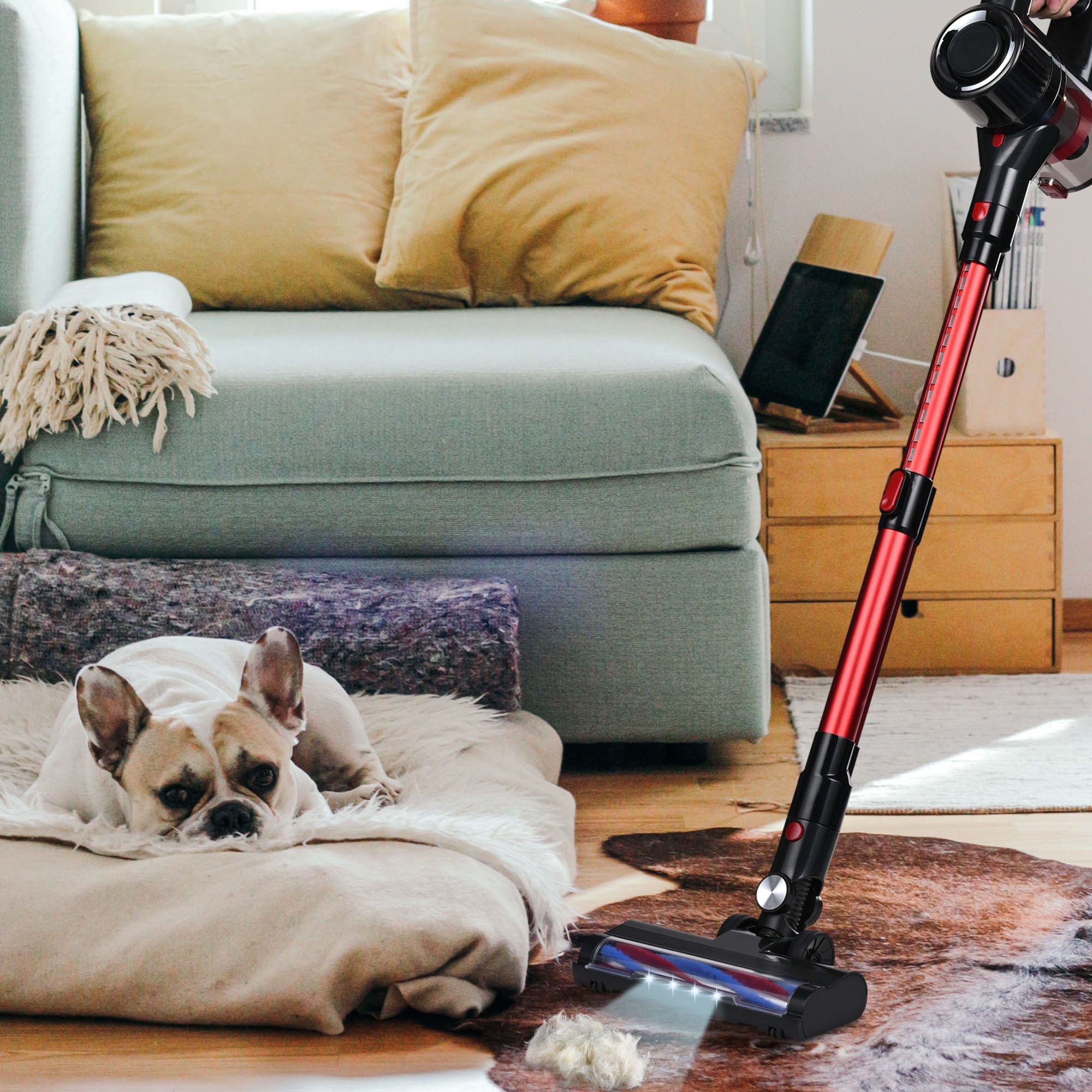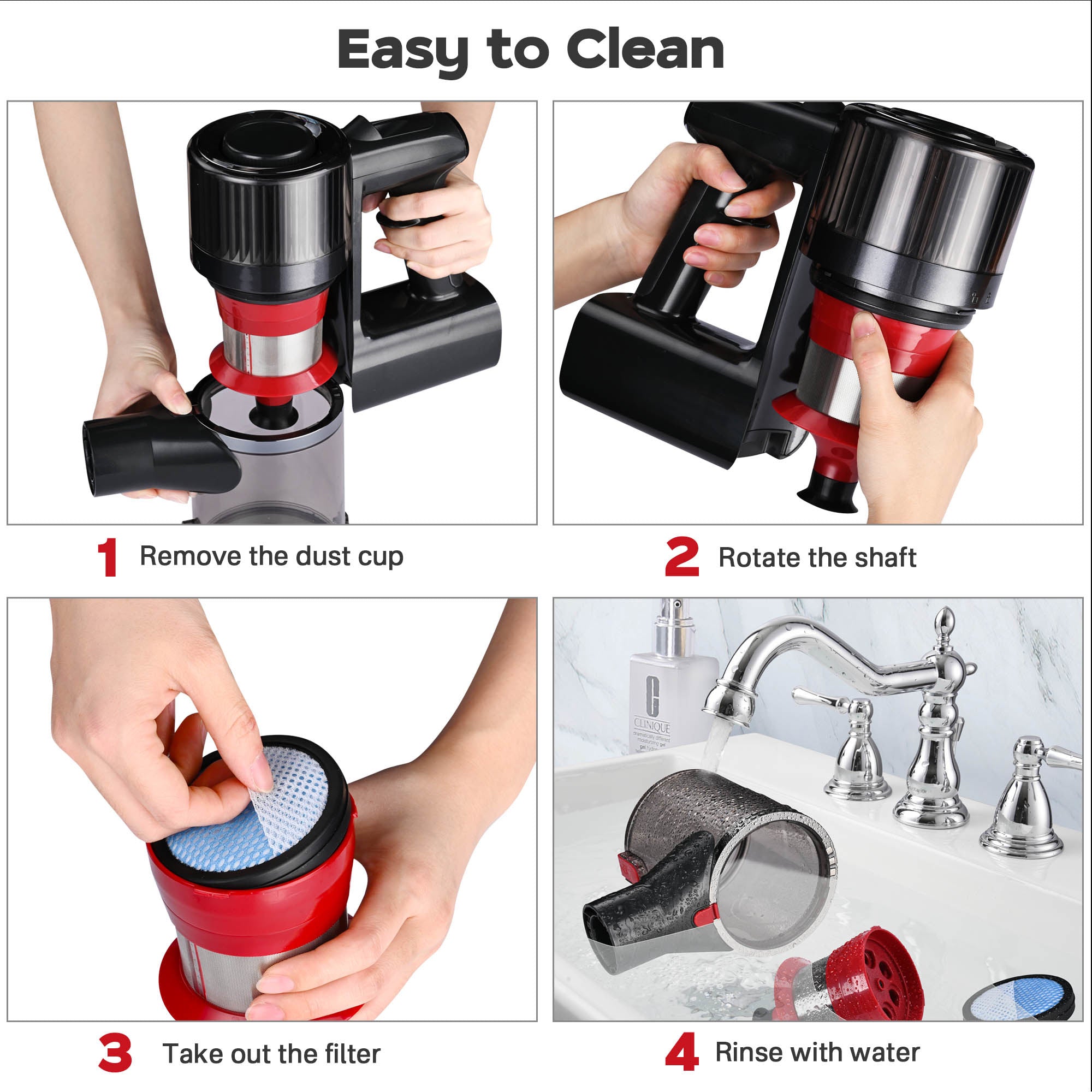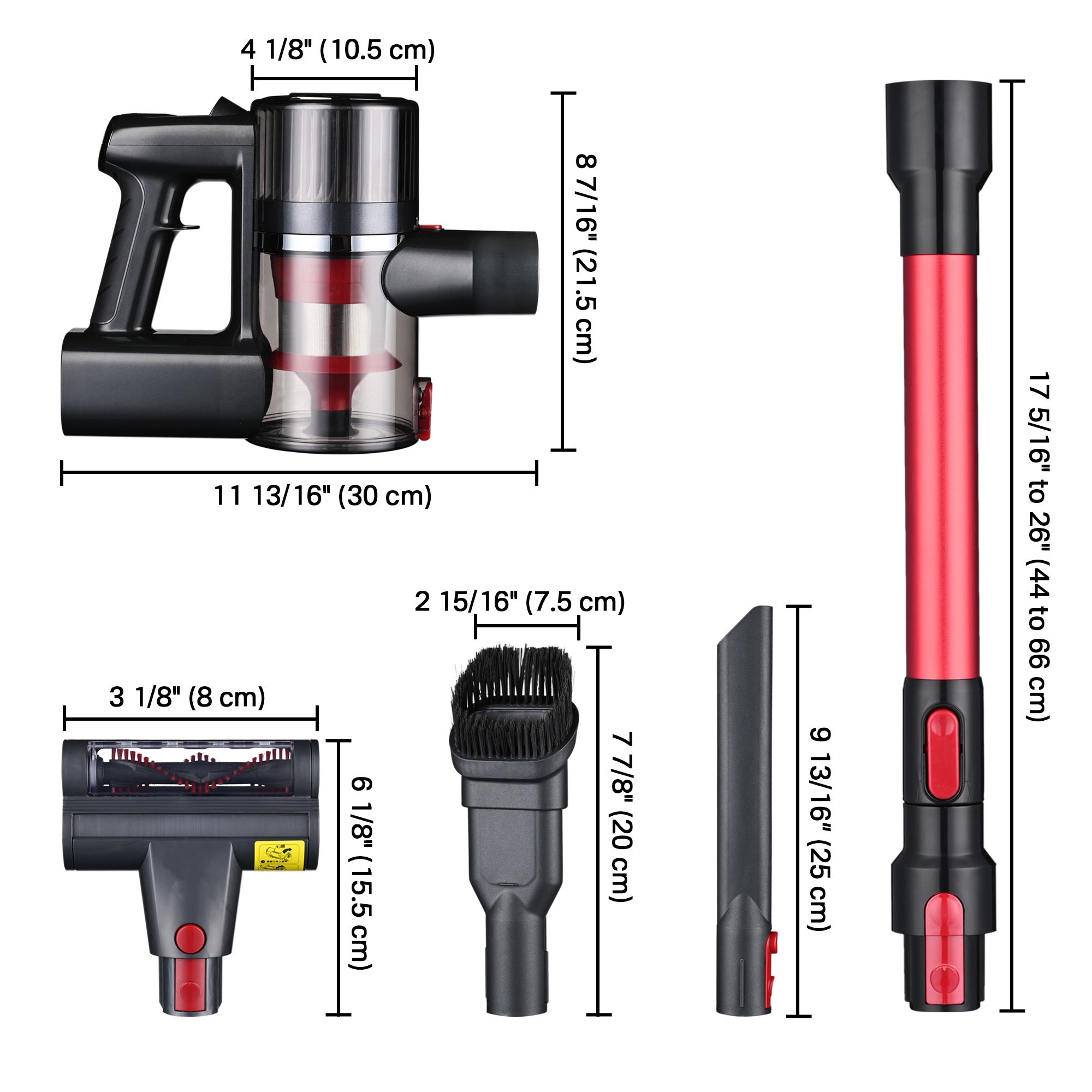 - Inalámbrico y recargable: la batería recargable de 2200 mAh proporciona hasta 40 minutos de funcionamiento para la aspiradora, ya no tendrá que preocuparse por los cables enredados; Peso ligero de 6,4 libras, fácil de manejar con una mano, lo que hace que las tareas del hogar sean más fáciles y sin complicaciones.