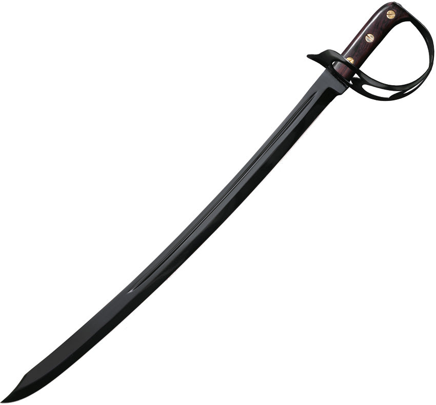 30.38" (77.17cm) overall. 25" (63.5cm) 1055HC steel blade. Brown wood handle. Blued finish blade. Steel D-guard. Leather scabbard with brass... Leer más...