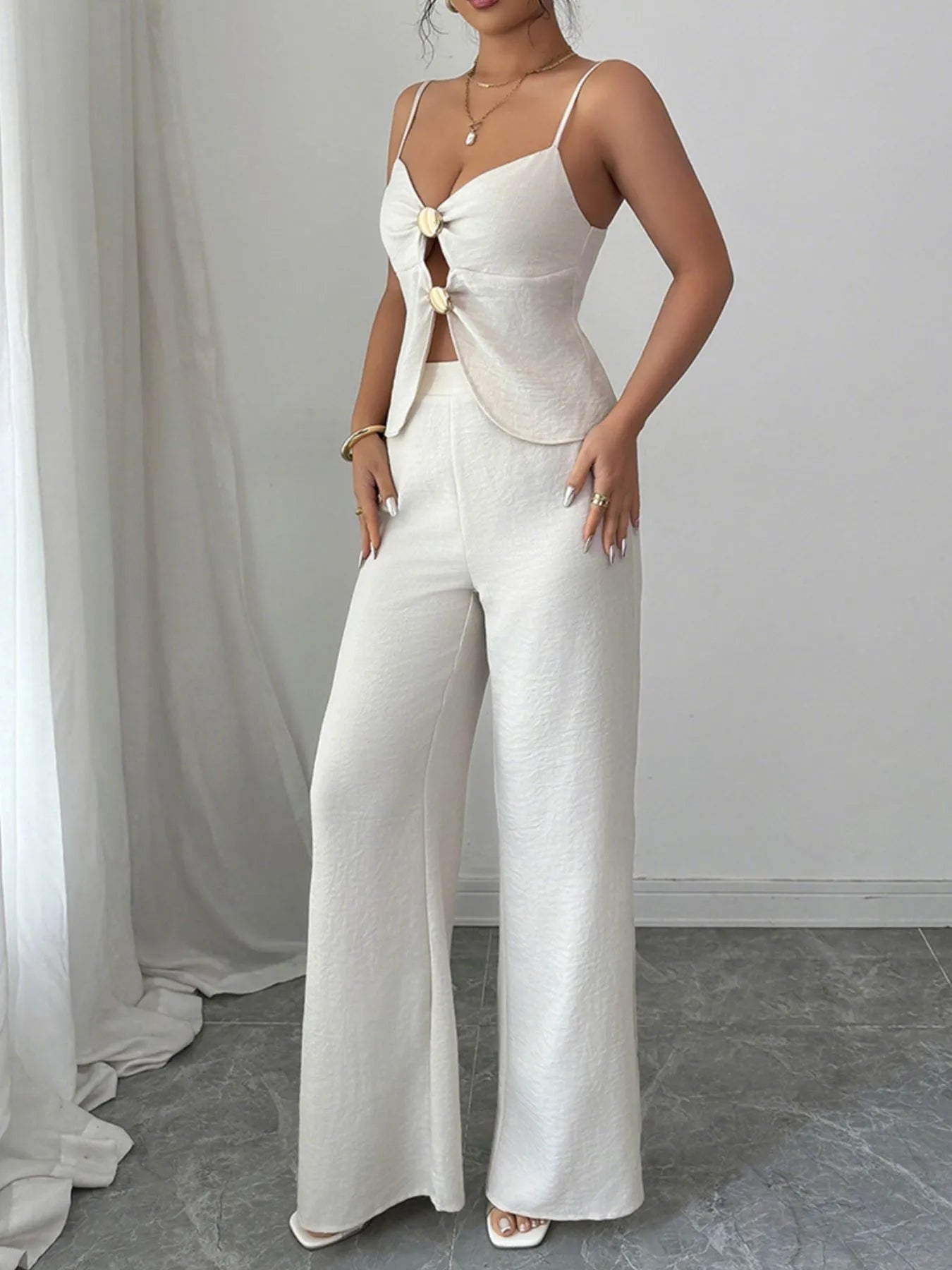 Cutout Back Zipper Cami and Wide Leg Pants Set