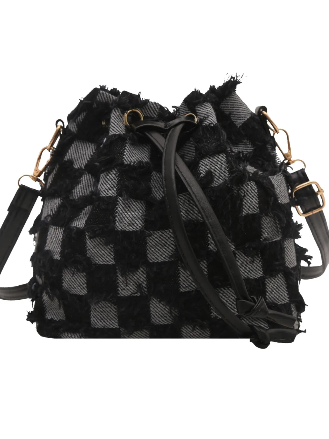 Drawstring Raw Edge Bucket Bag