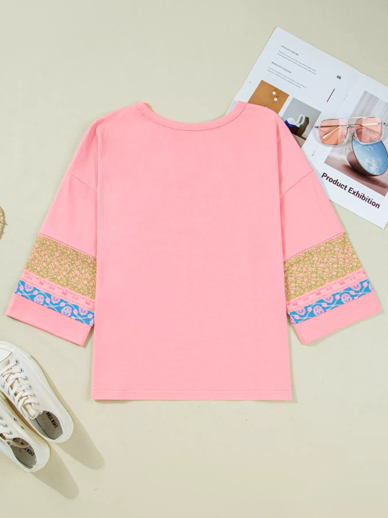 Floral Color Block Patchwork Long Sleeve Top