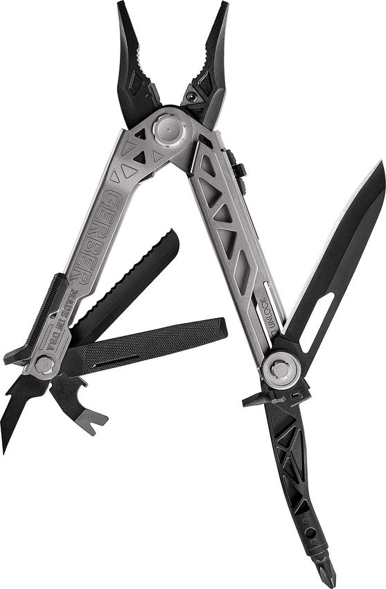 4.7" closed. 6.6" overall. 0 Gray stainless handle. Tools include: Pliers l Wire cutter l Hex driver l Flat head... Leer más...