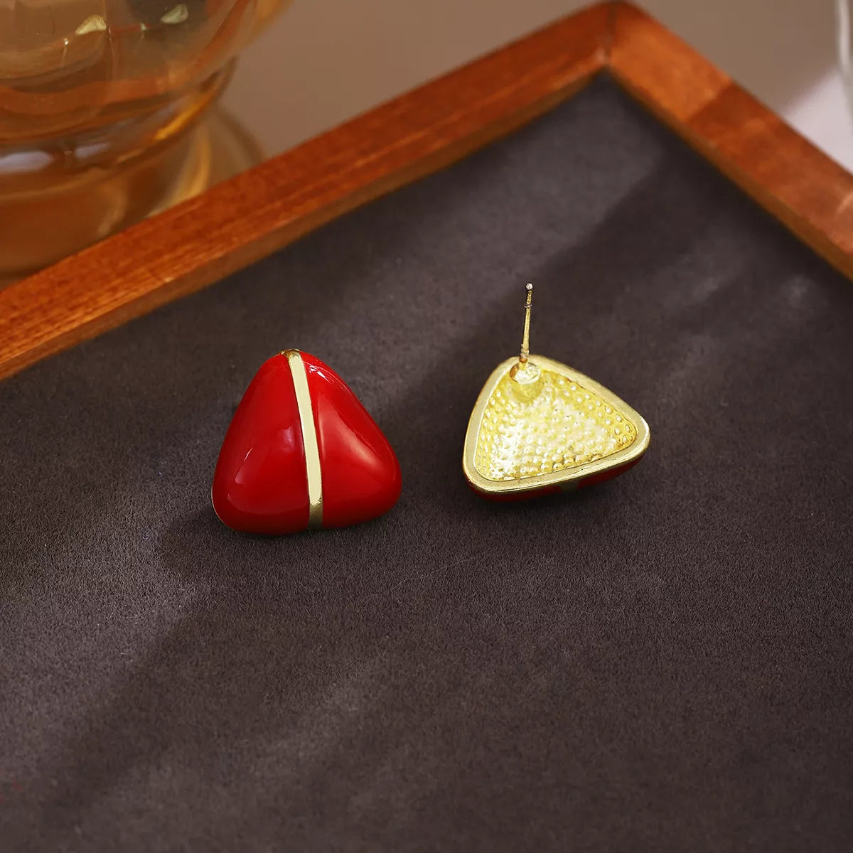 Geometric Triangle Stud Earrings with Gold Accent
