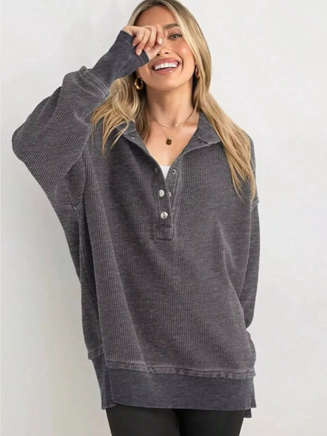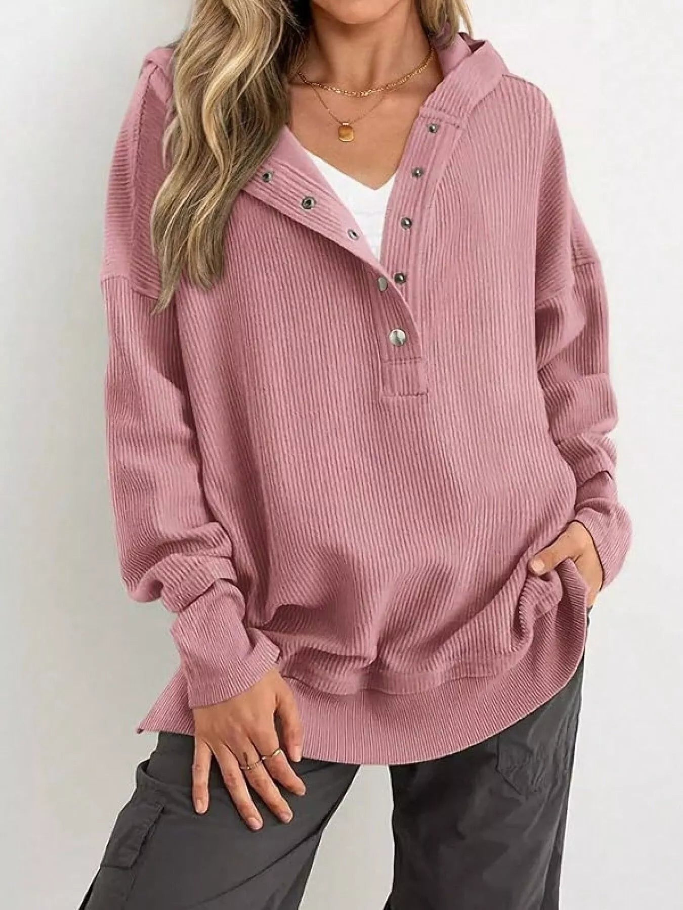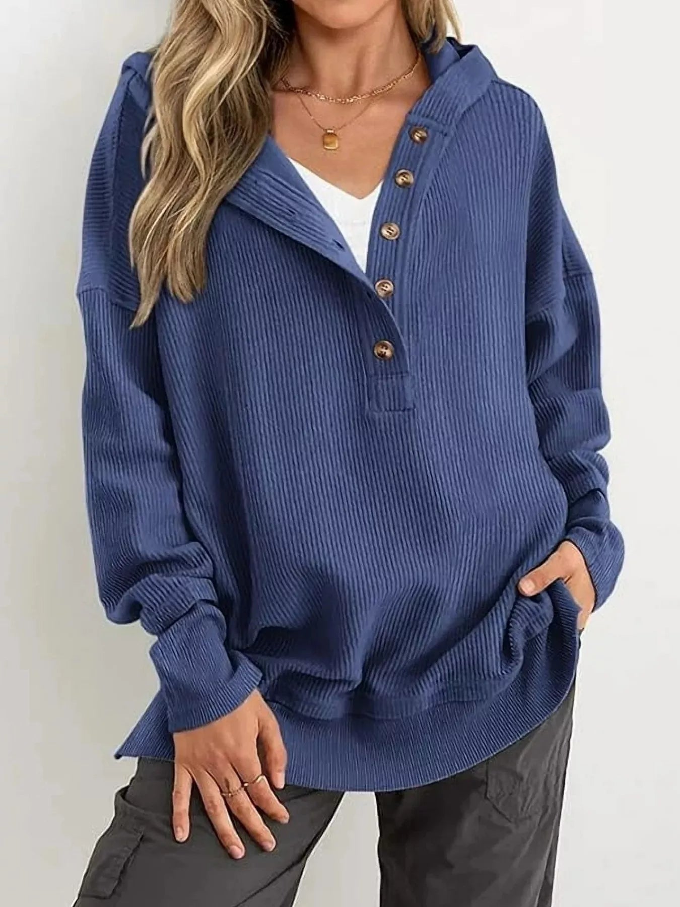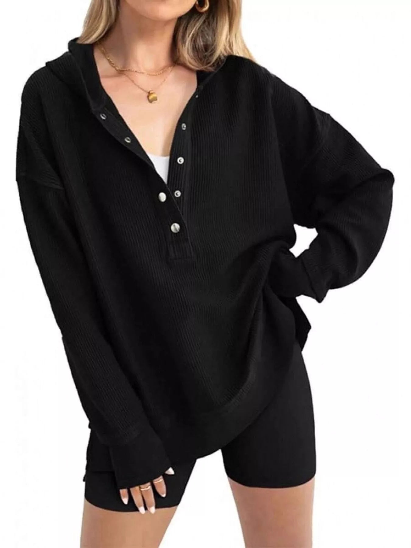 • Features:Basic style,Oversized,Buttoned,Drawstring
