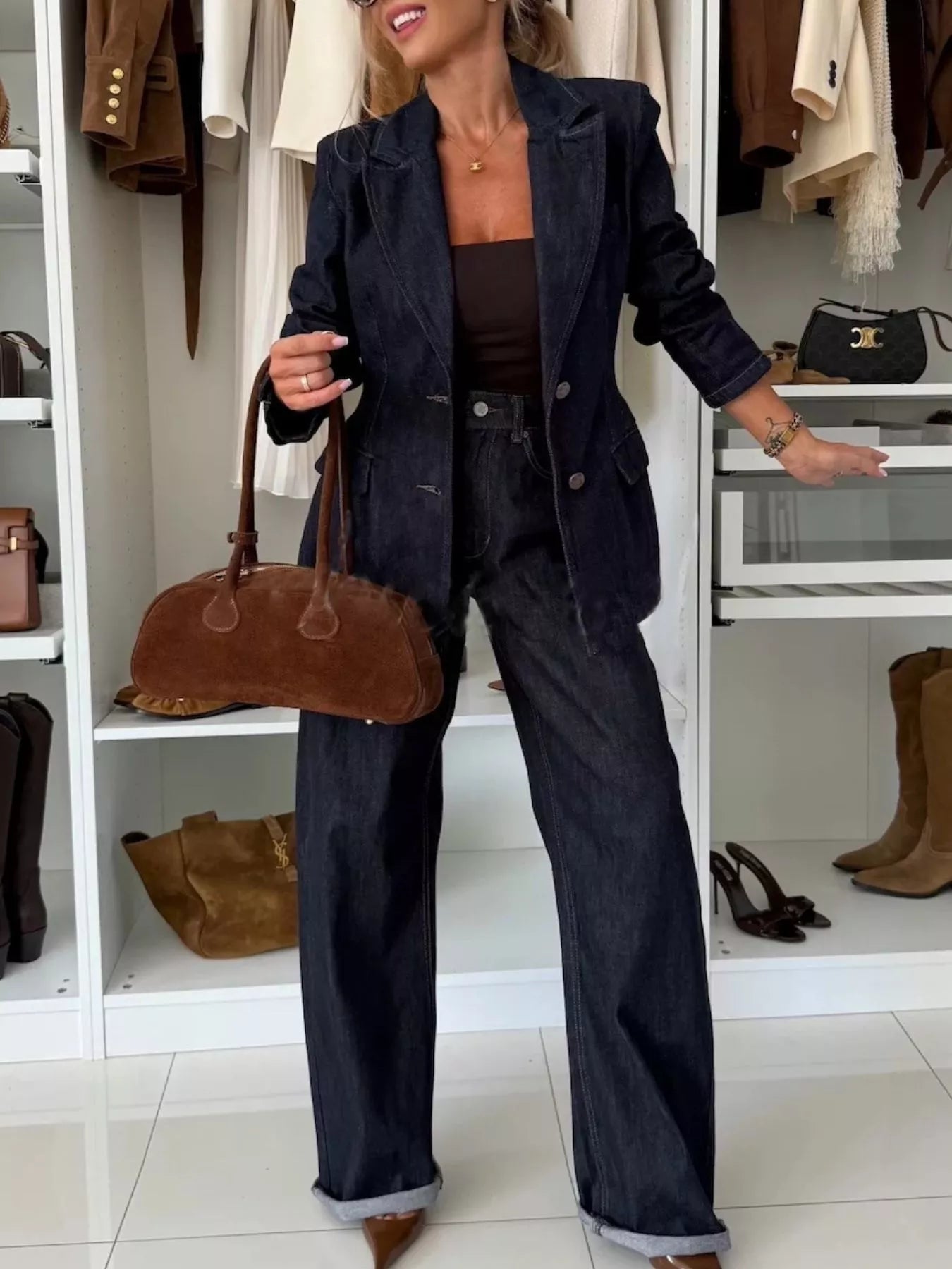 High-Waisted Wide-Leg Washed Jeans