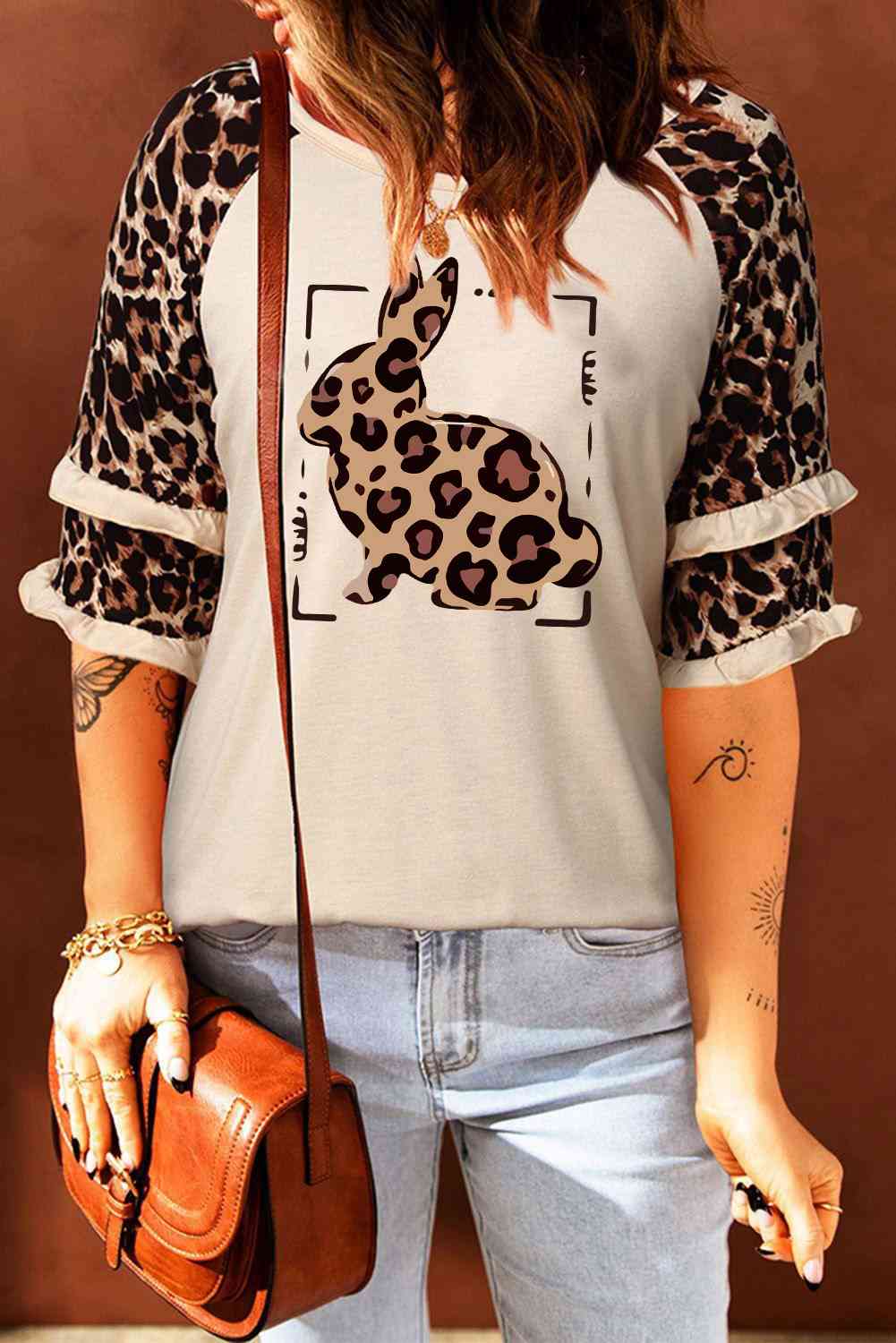 Leopard Bunny Graphic Layered Sleeve T-Shirt