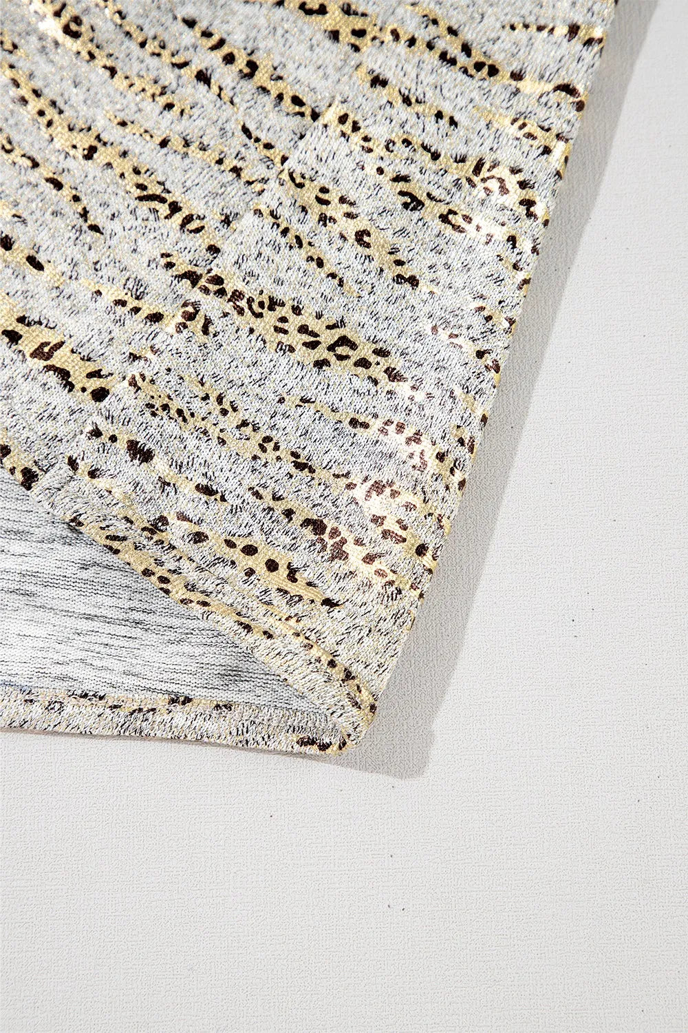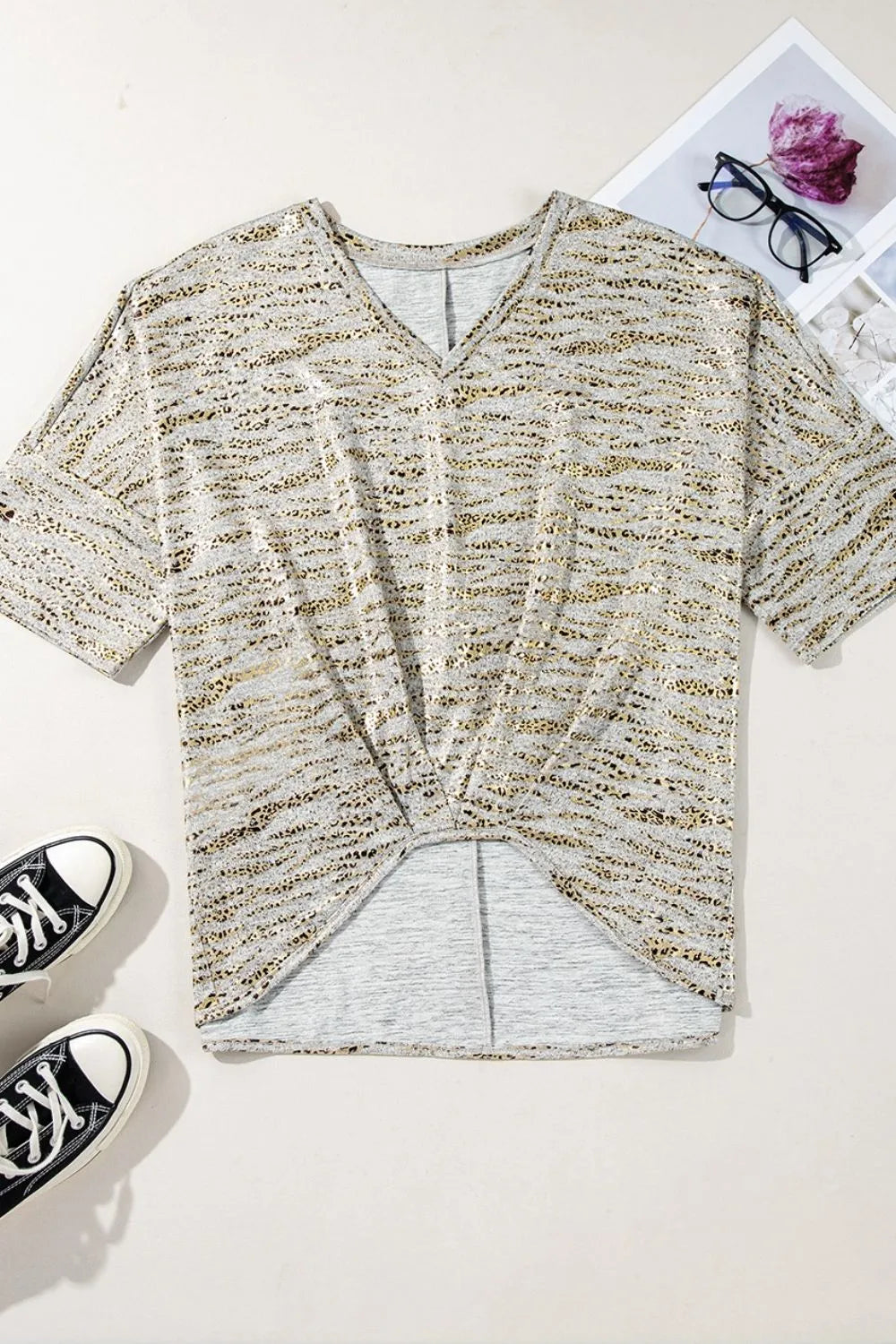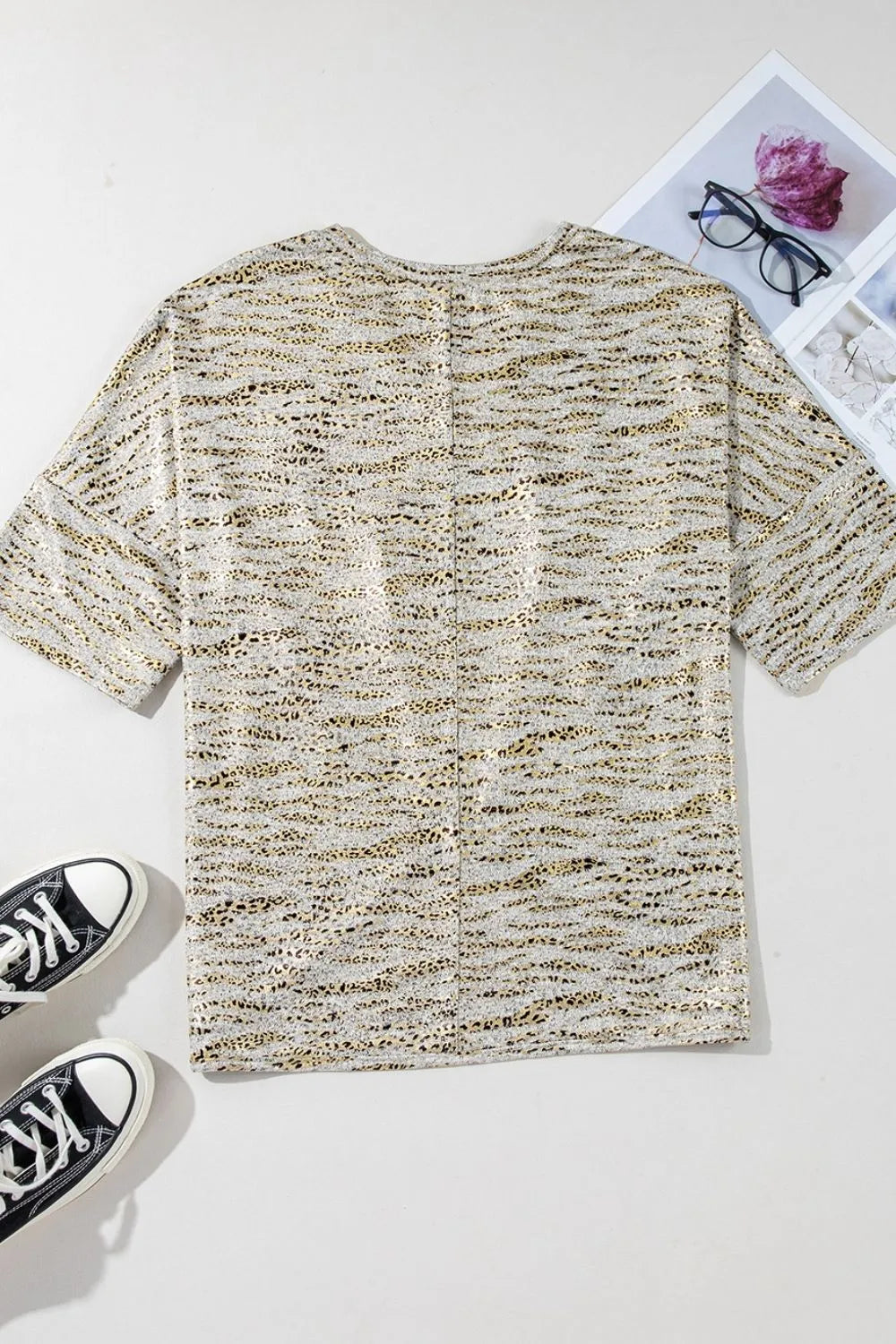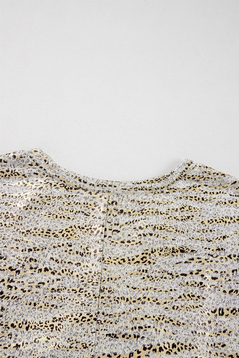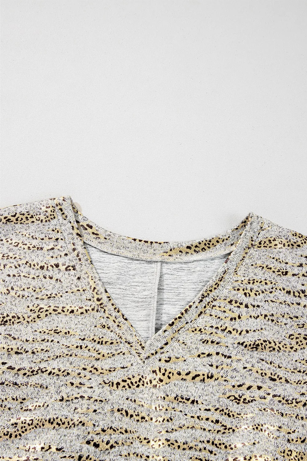 Leopard Print Half Sleeve V Neck Loose Fit T Shirt
