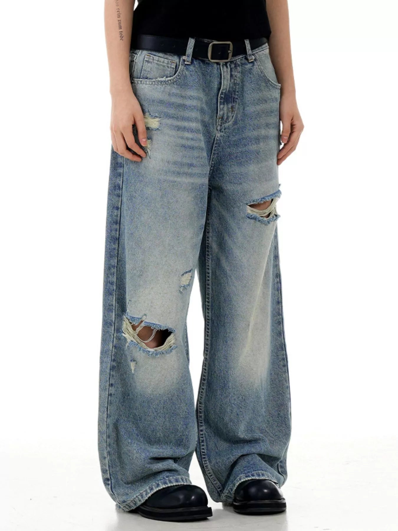 Men's Distressed Wide Leg Jeans