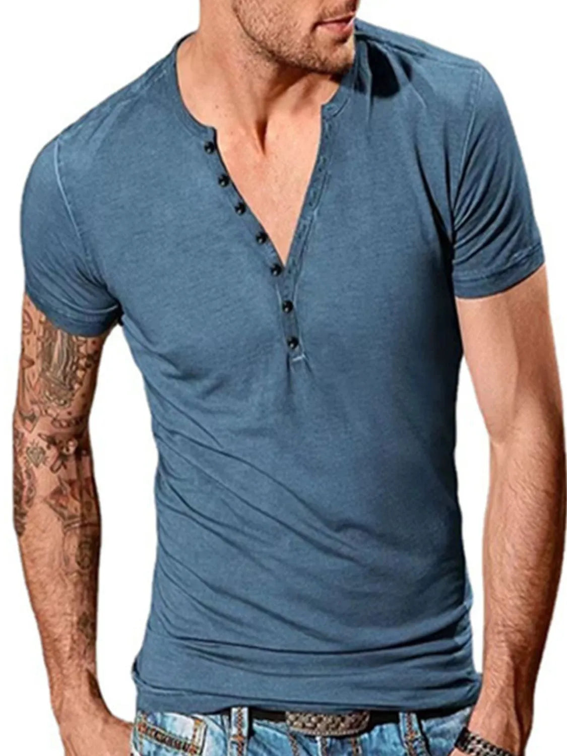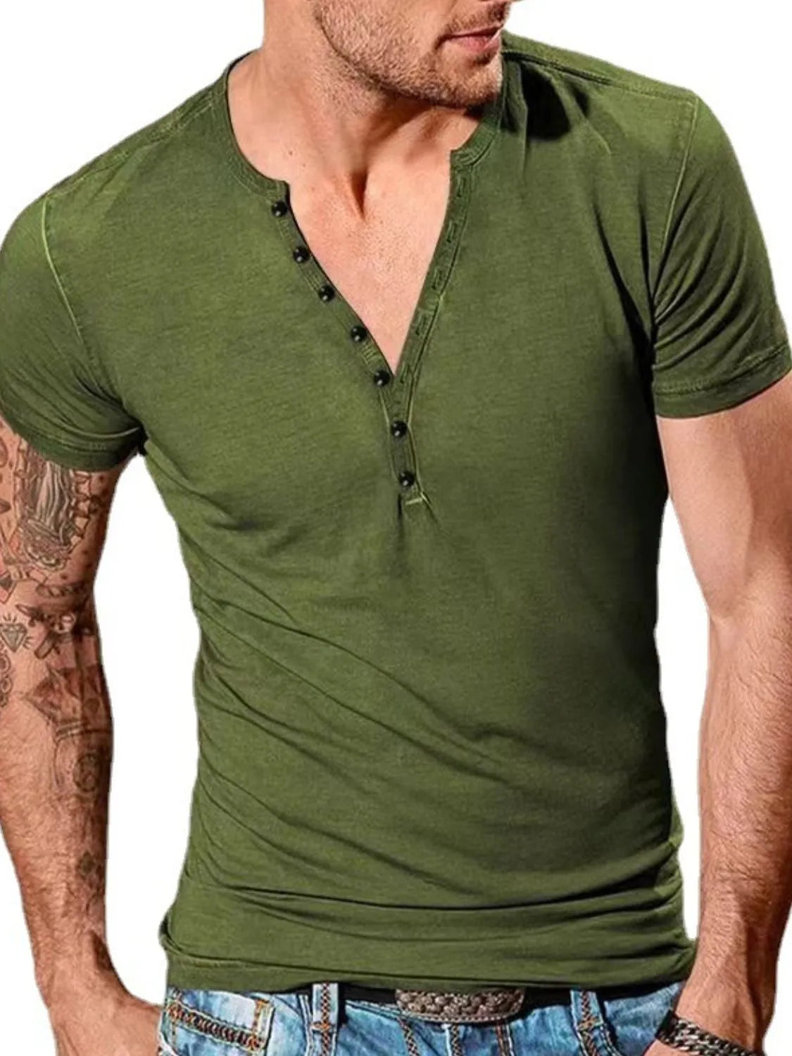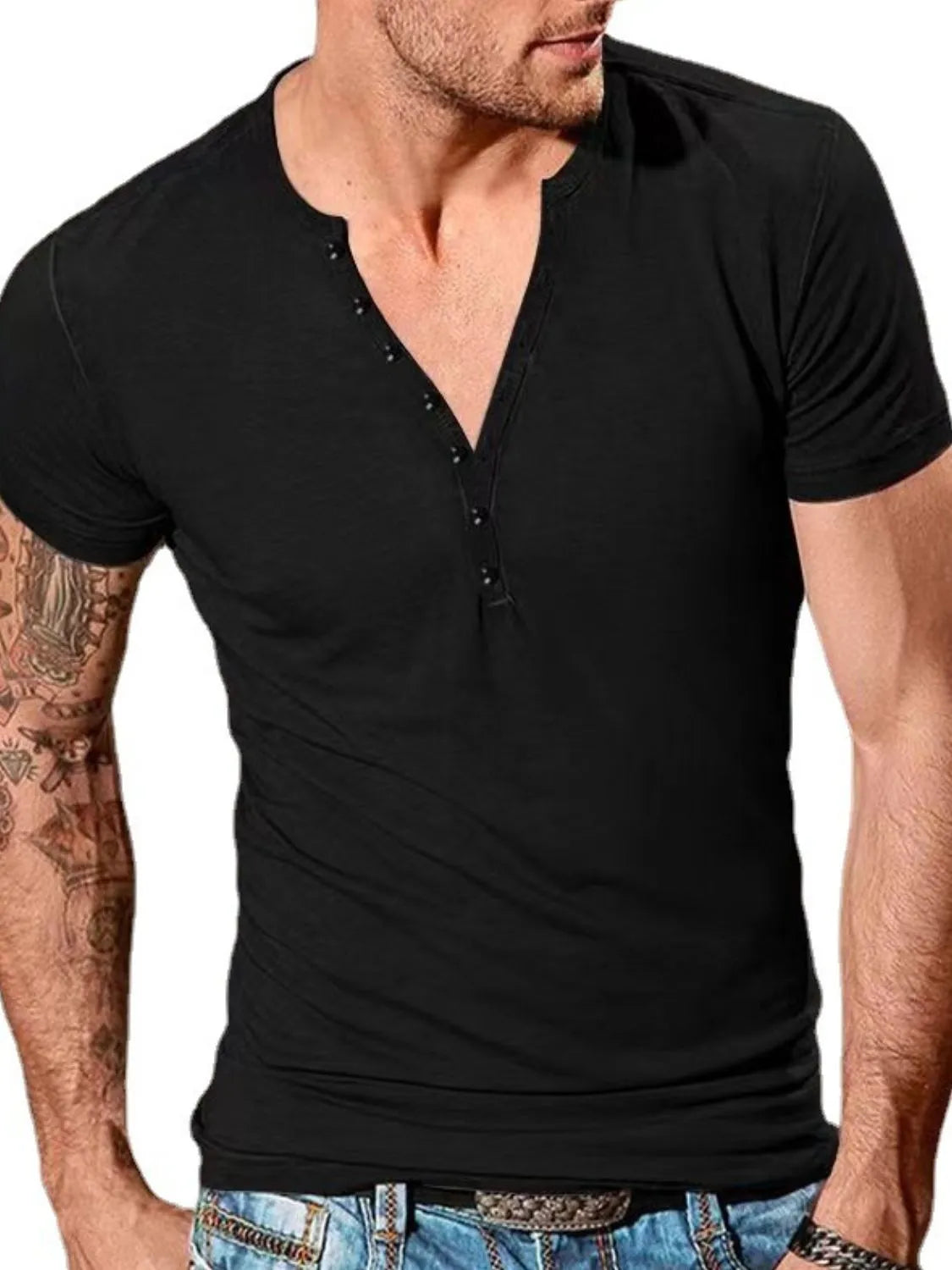 Men's Full Size Button Detail Short Sleeve Top Plus Size