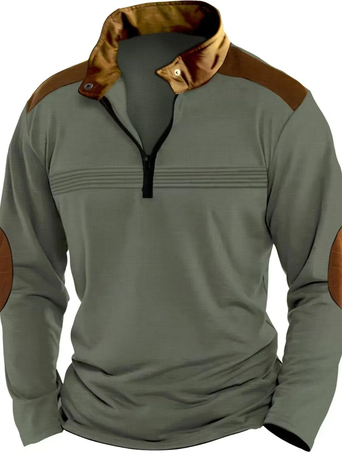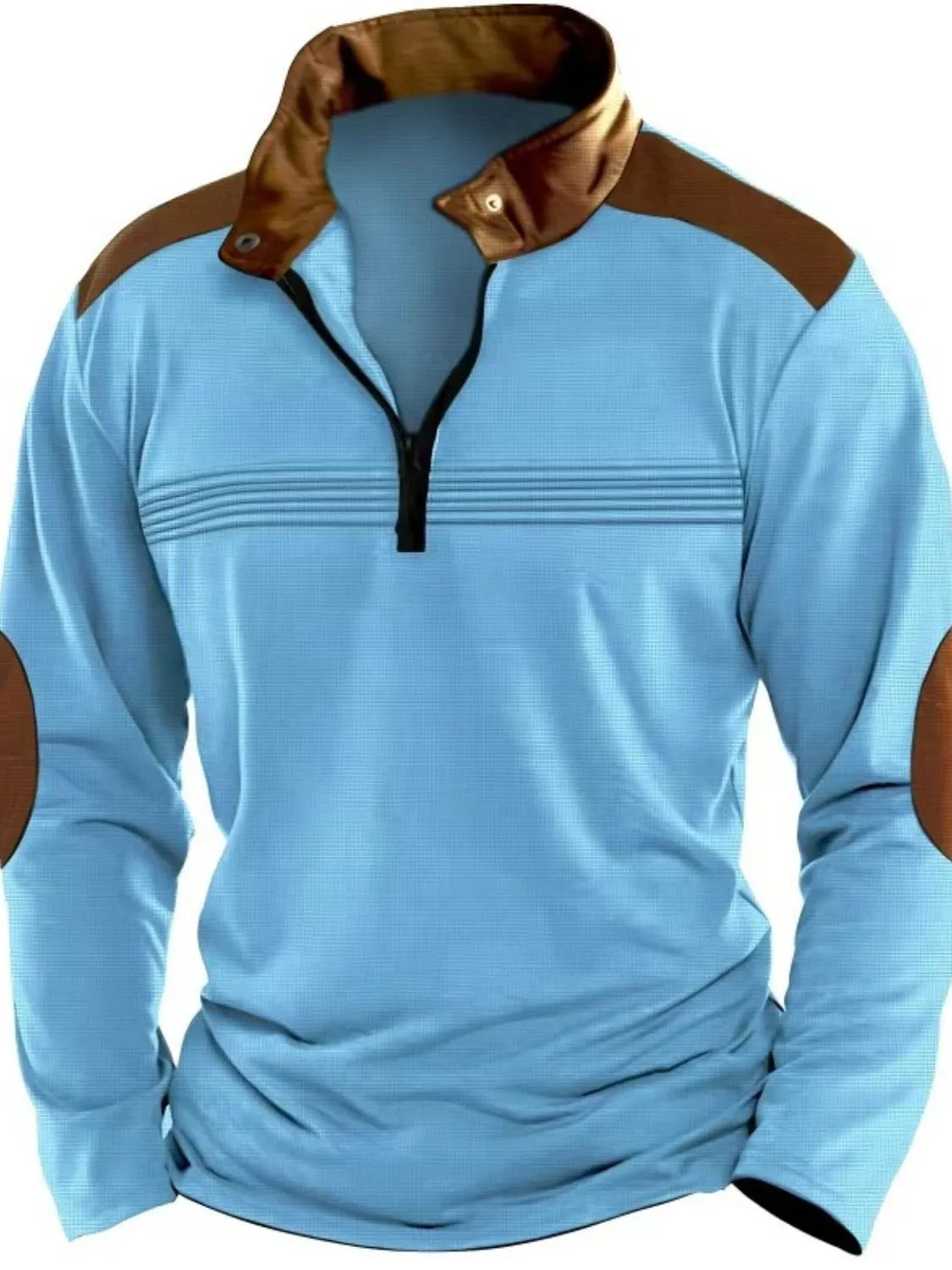 Men's Full Size Contrast Half Zip Long Sleeve Polo Plus Size