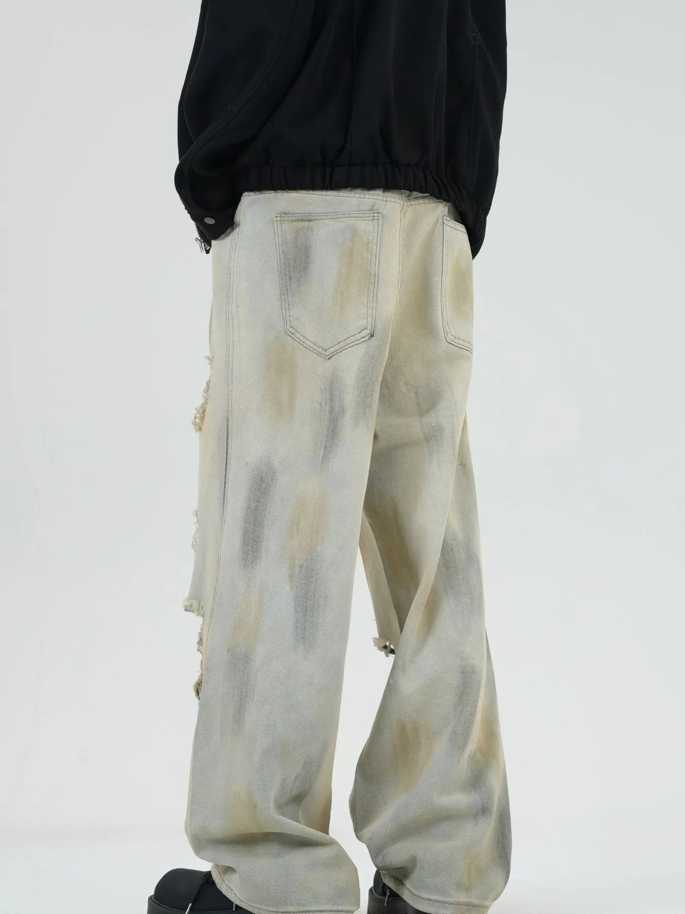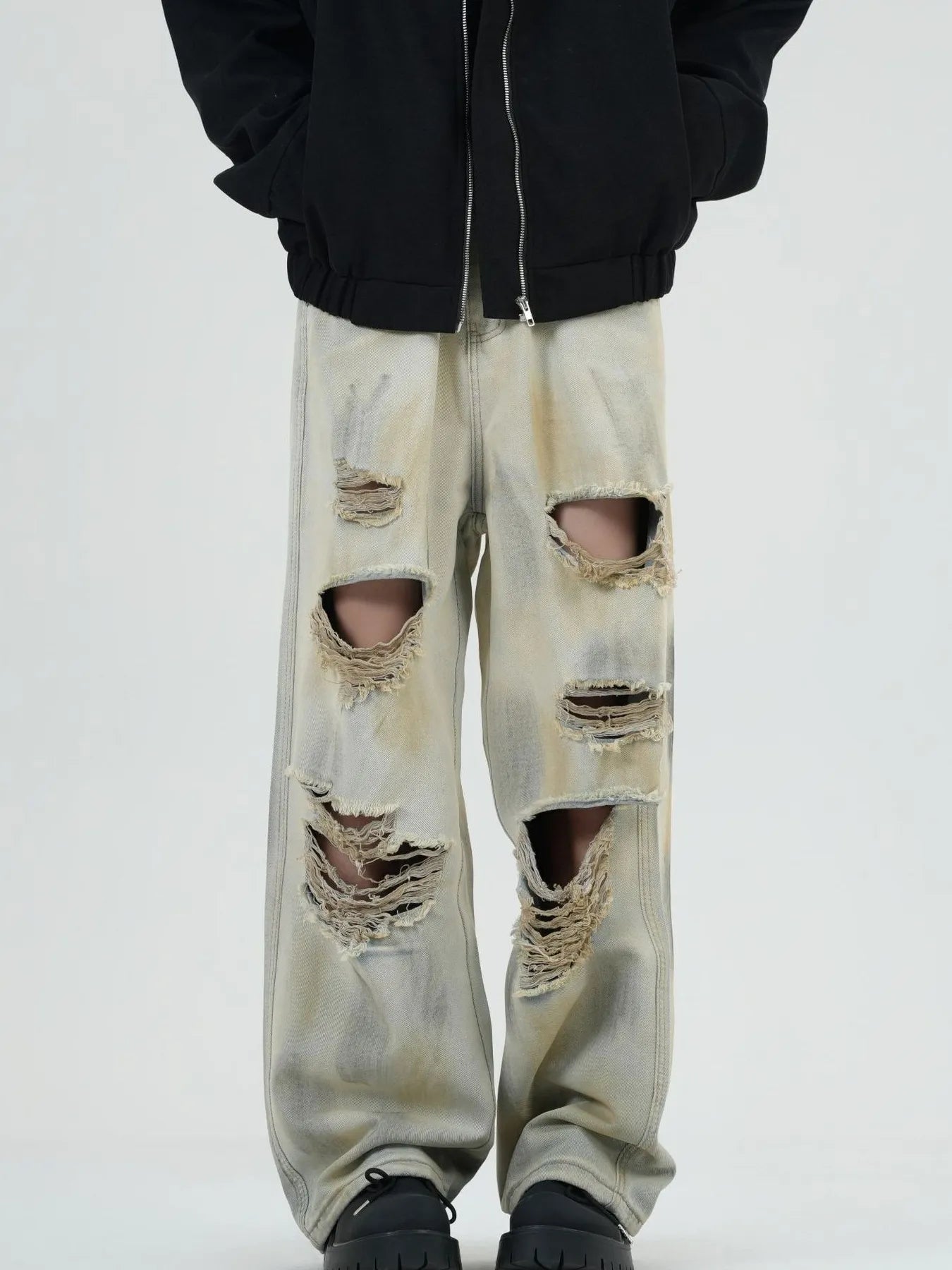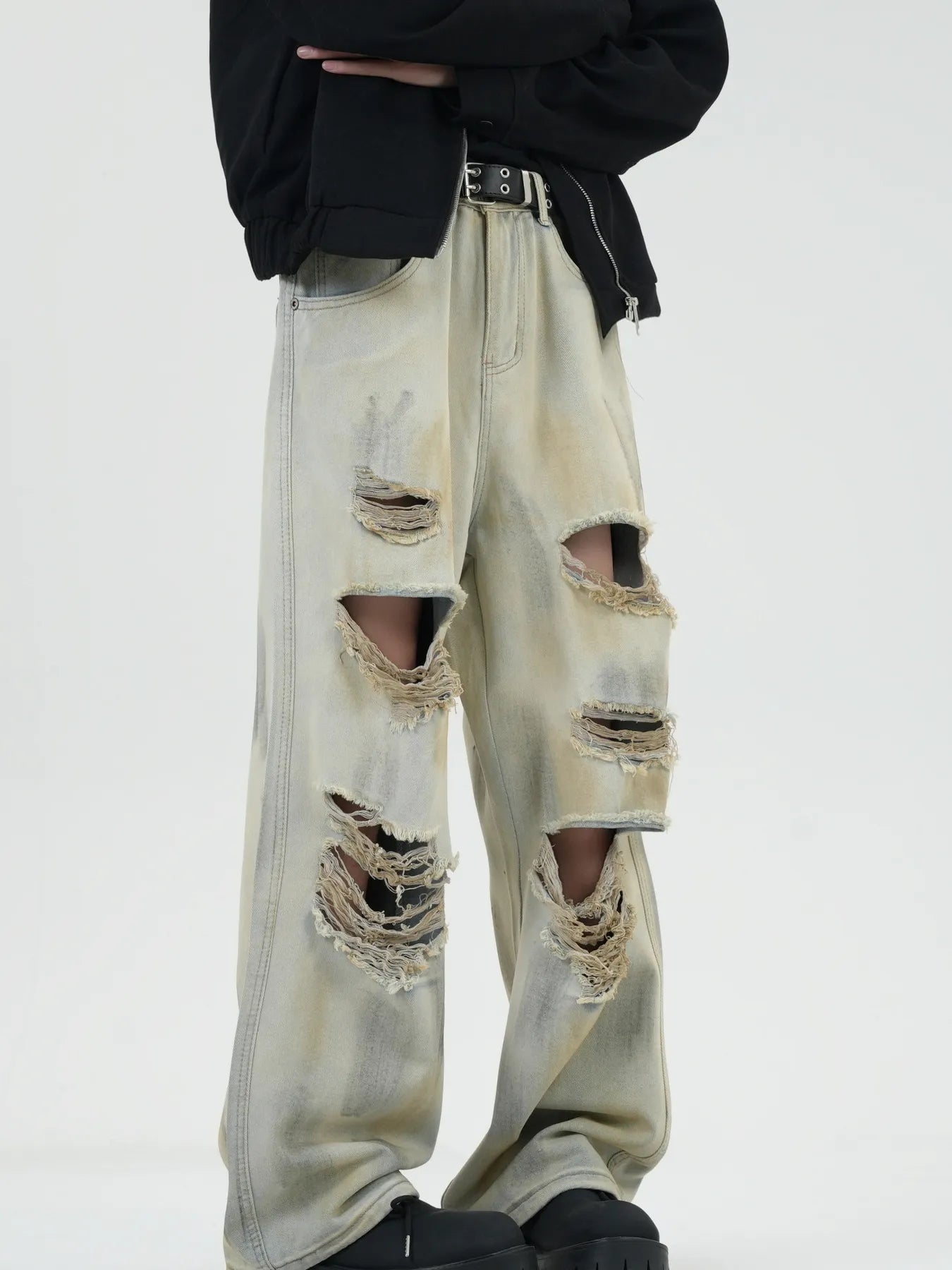 Men's Full Size Distressed Wide Leg Jeans Plus Size