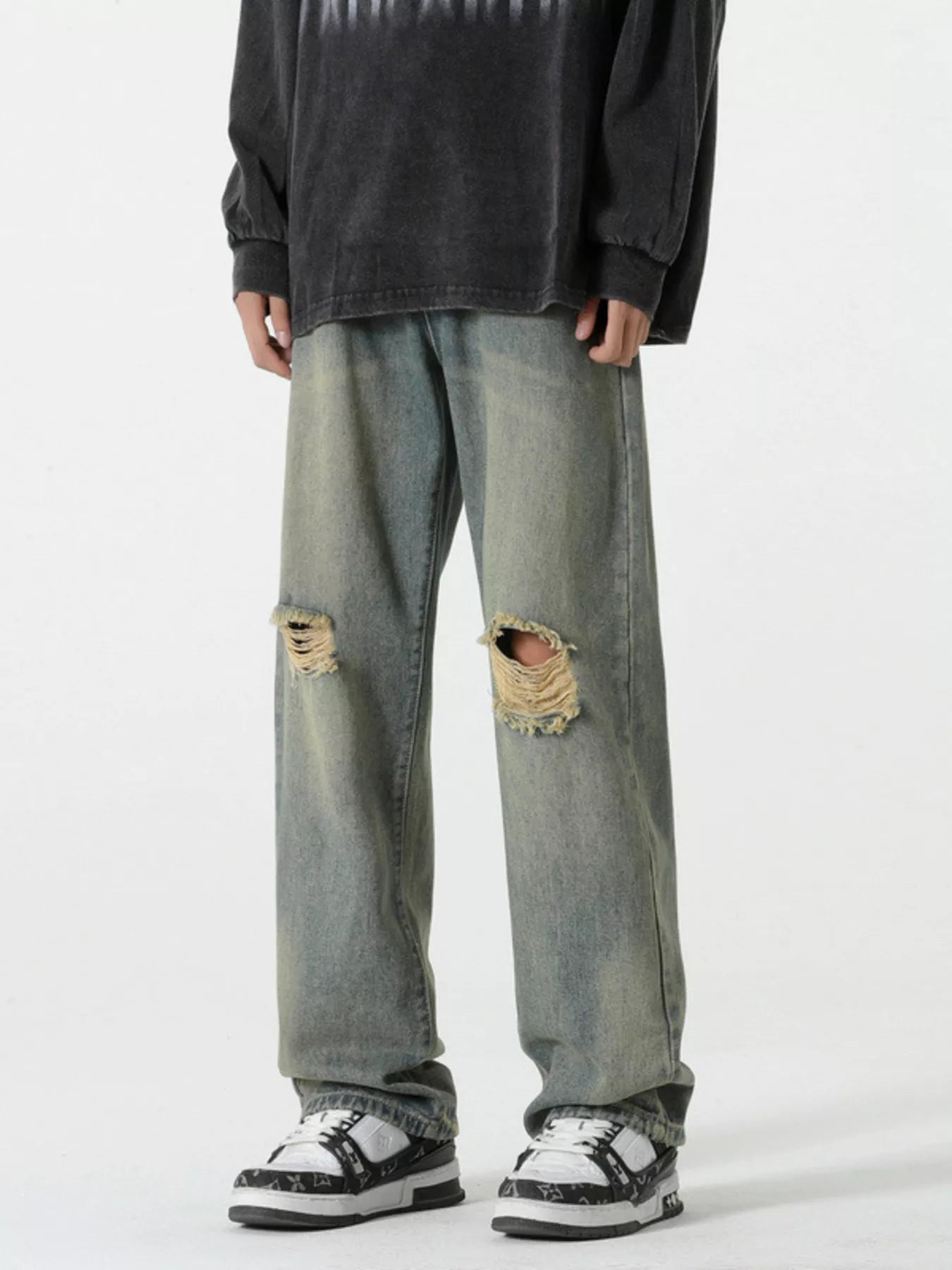 Men's Full Size Distressed Wide Leg Jeans Plus Size
