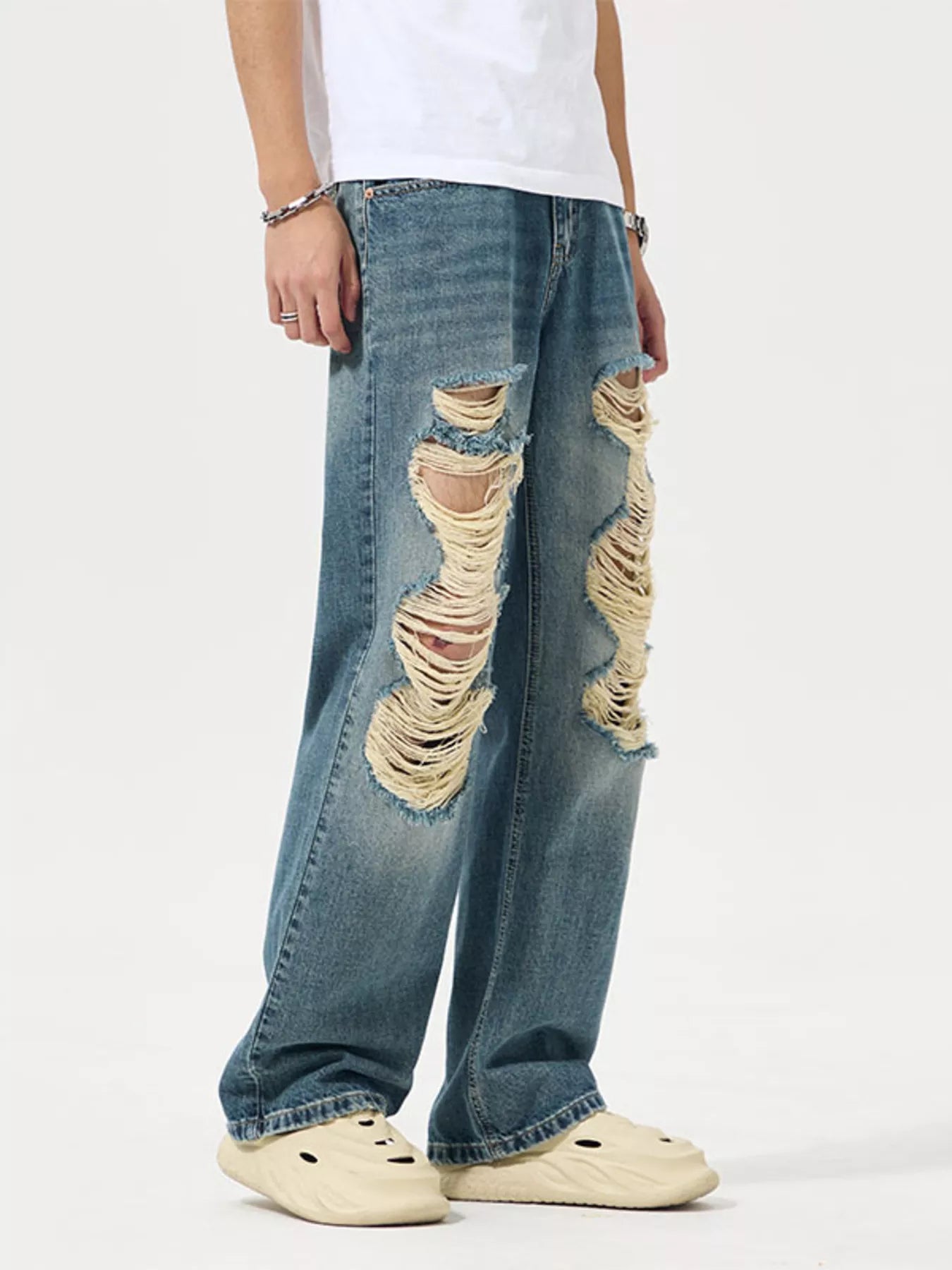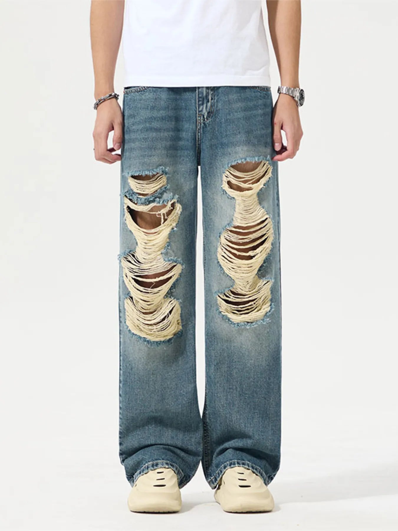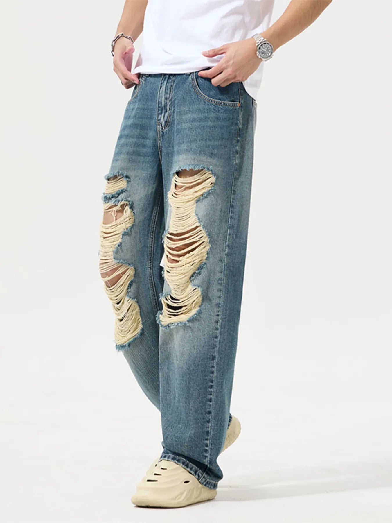 Men's Full Size Distressed Wide Leg Jeans Plus Size