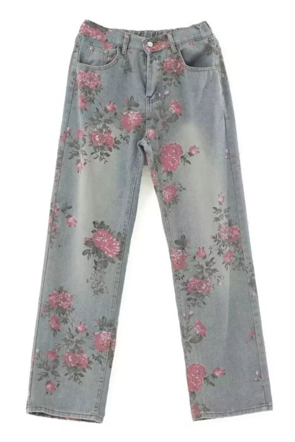 Men's Full Size Floral Print Wide Leg Jeans Plus Size