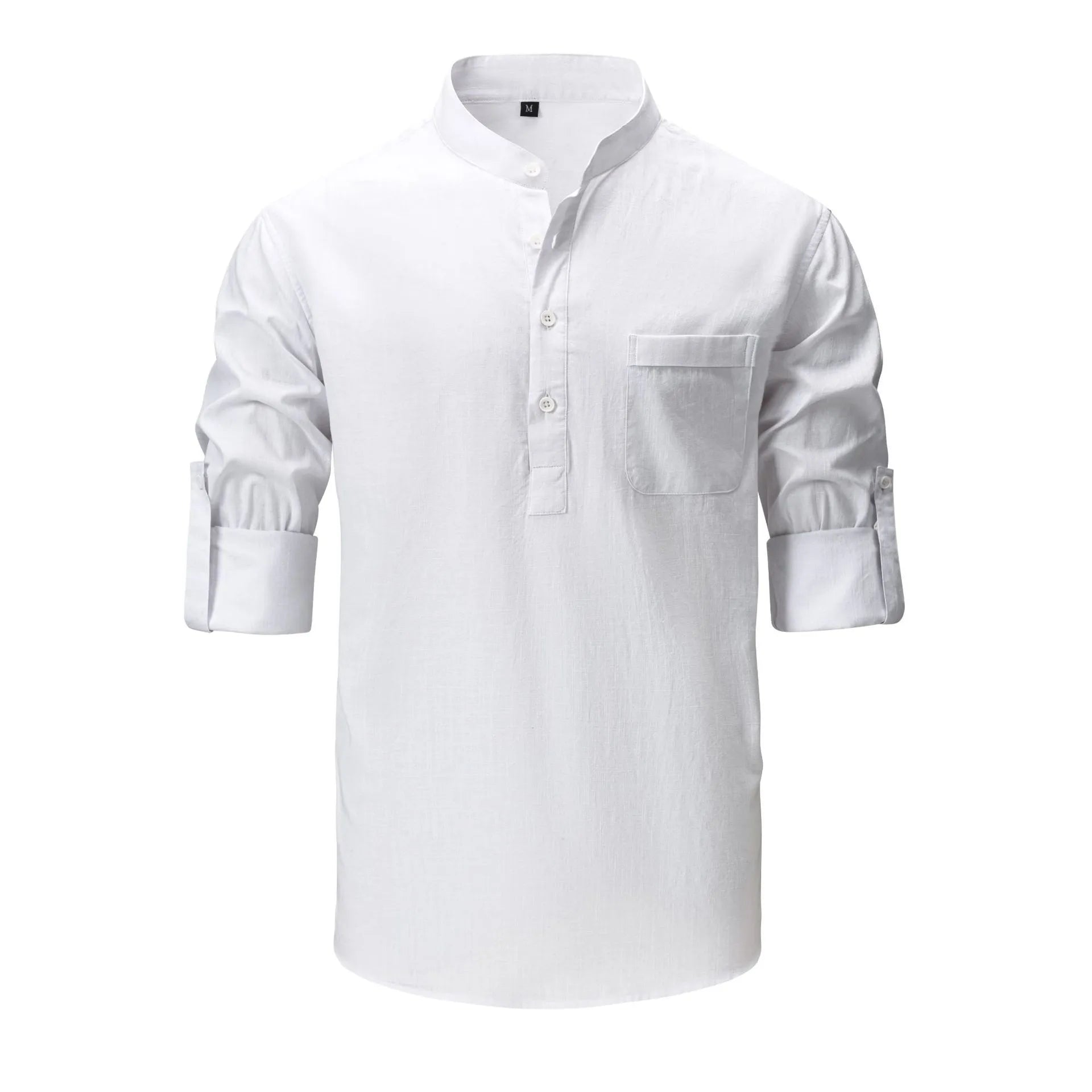 Men's Full Size Mandarin Collar Roll-Up Sleeve Shirt Plus Size