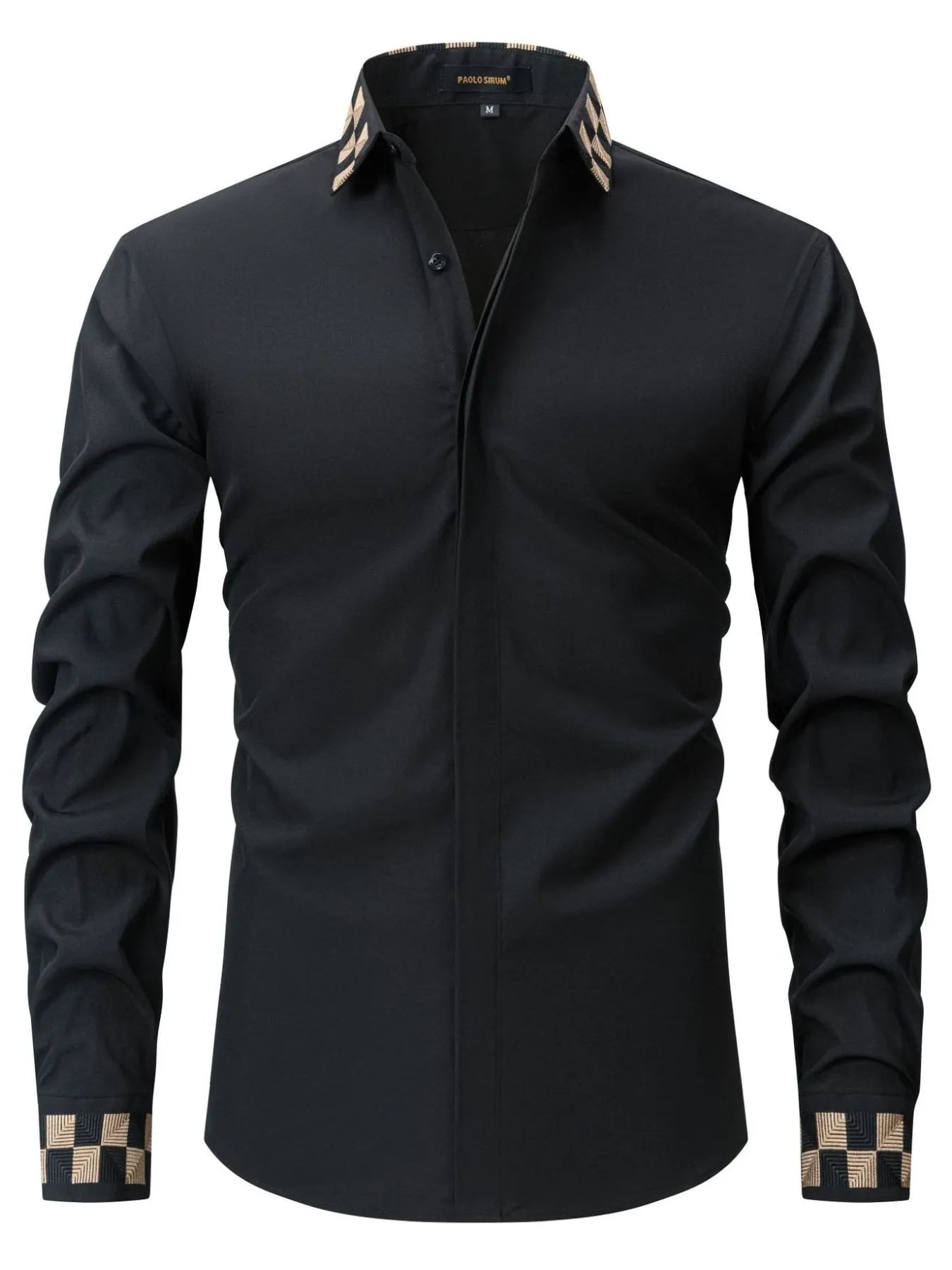 Men's Full Size Plaid Trim Collar Long Sleeve Shirt Plus Size