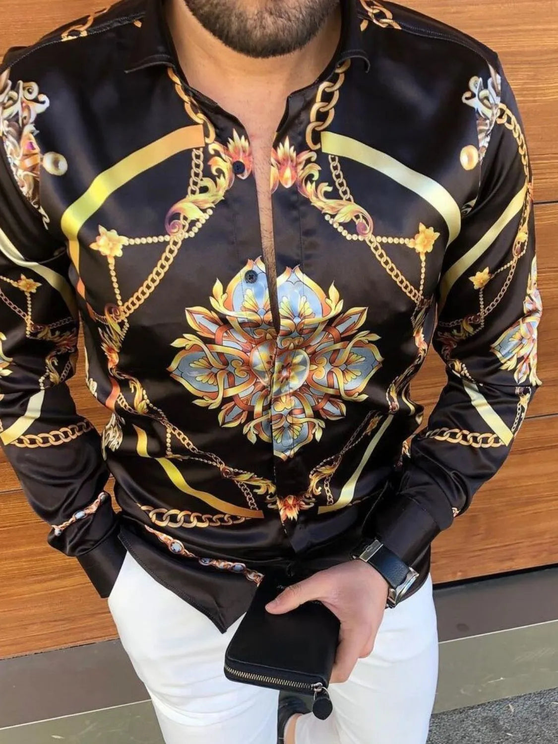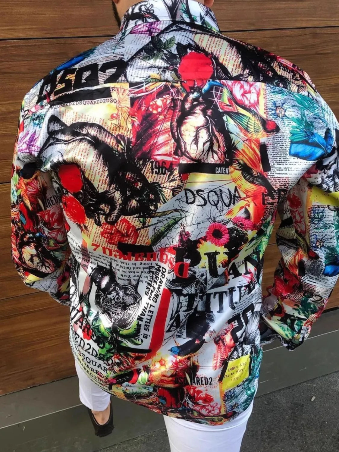 Men's Full Size Printed Collared Neck Long Sleeve Shirt Plus Size