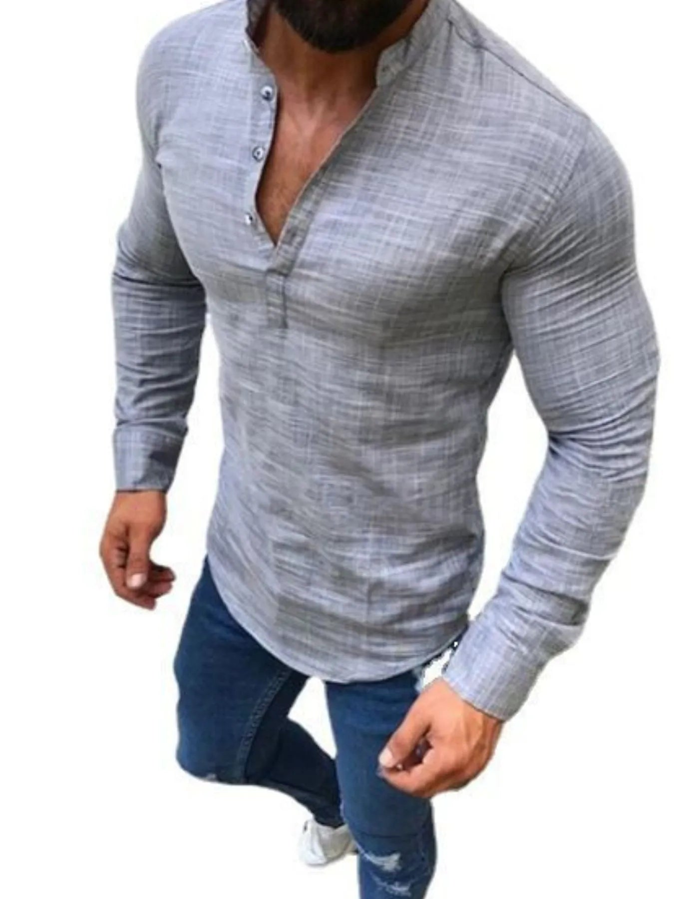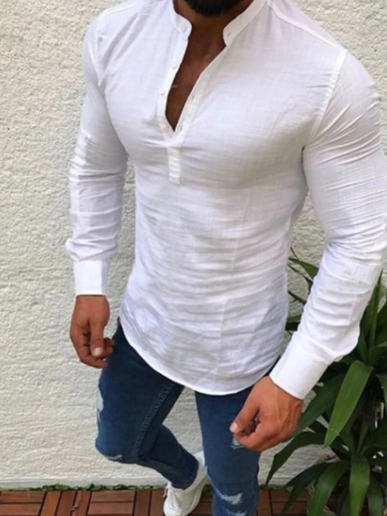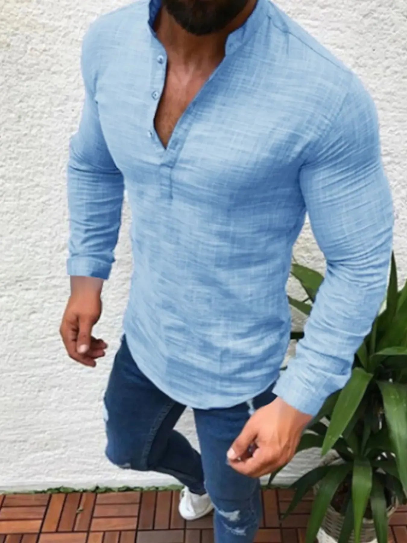 Men's Full Size Slim Fit Henley Long Sleeve Top Plus Size