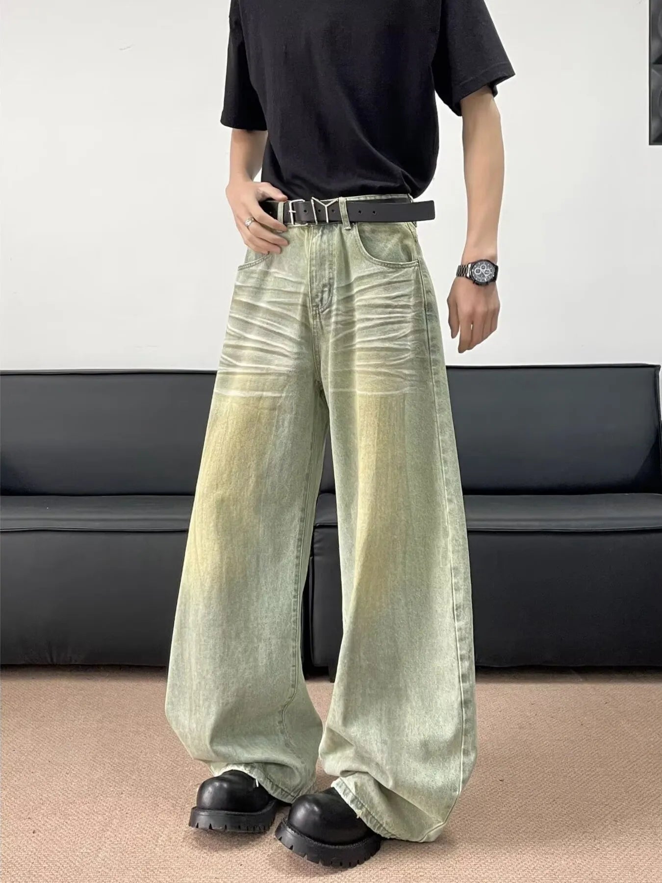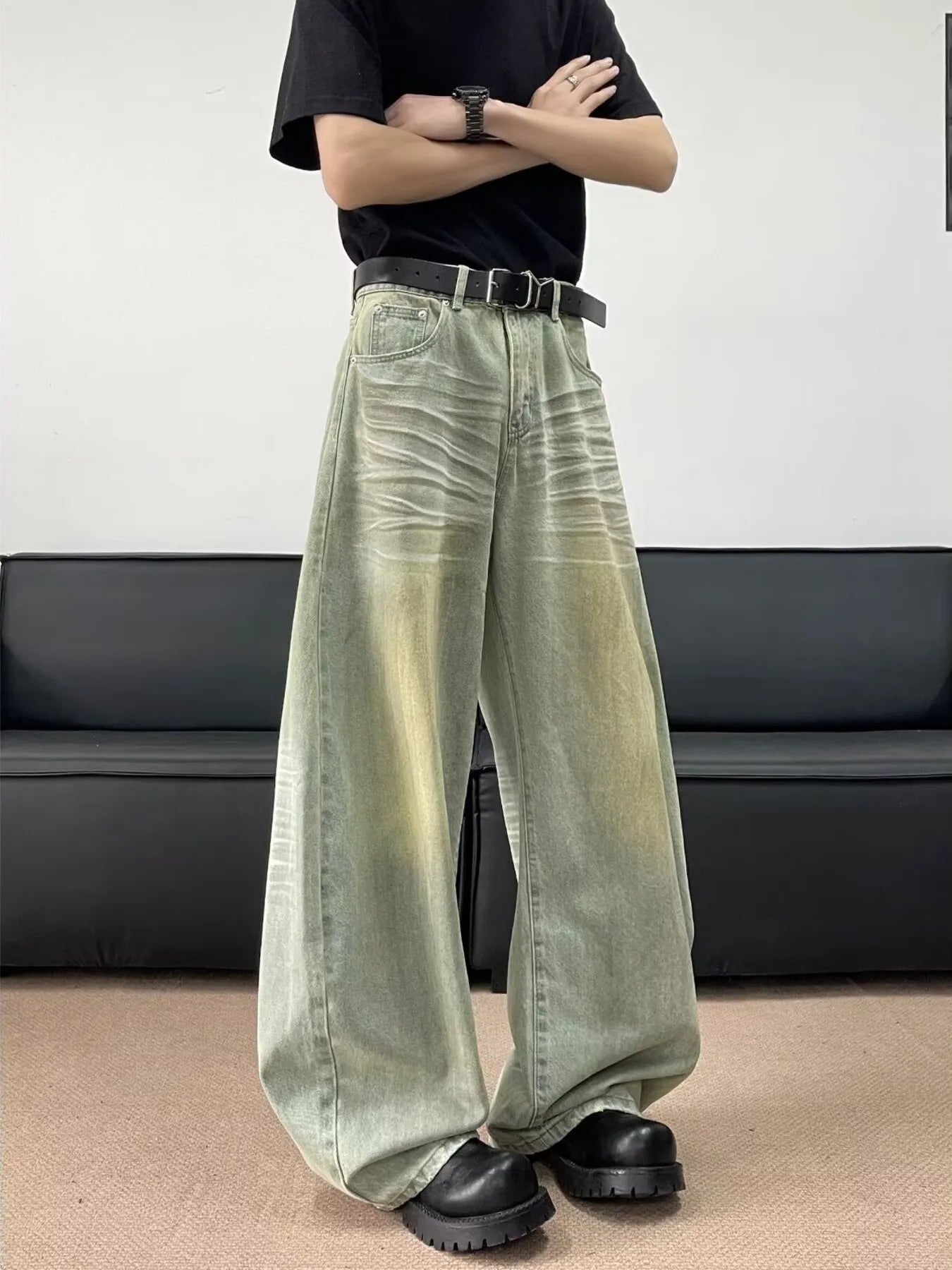Men's Full Size Wash Wide Leg Jeans Plus Size