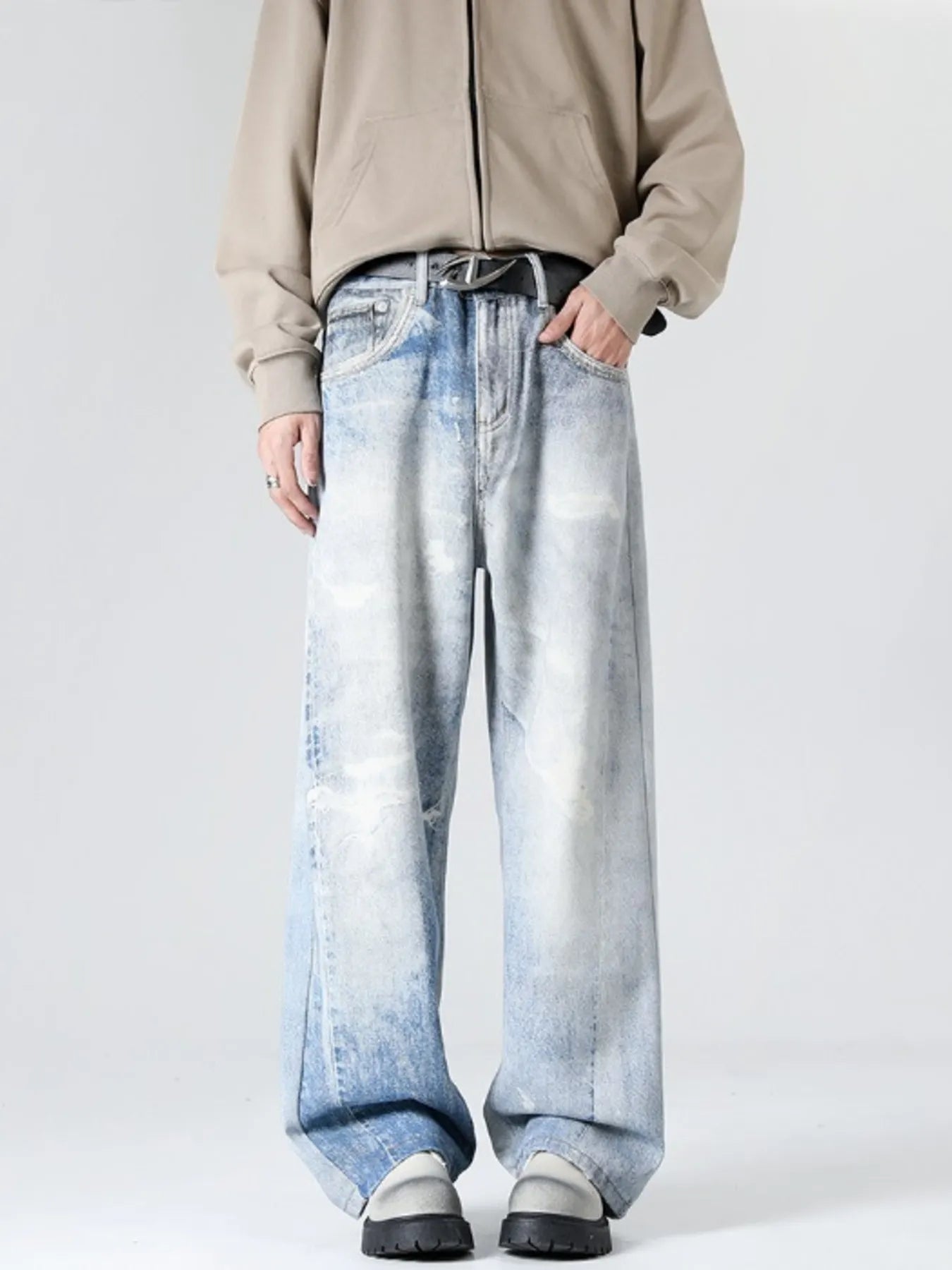 Men's Full Size Washed Wide Leg Jeans Plus Size